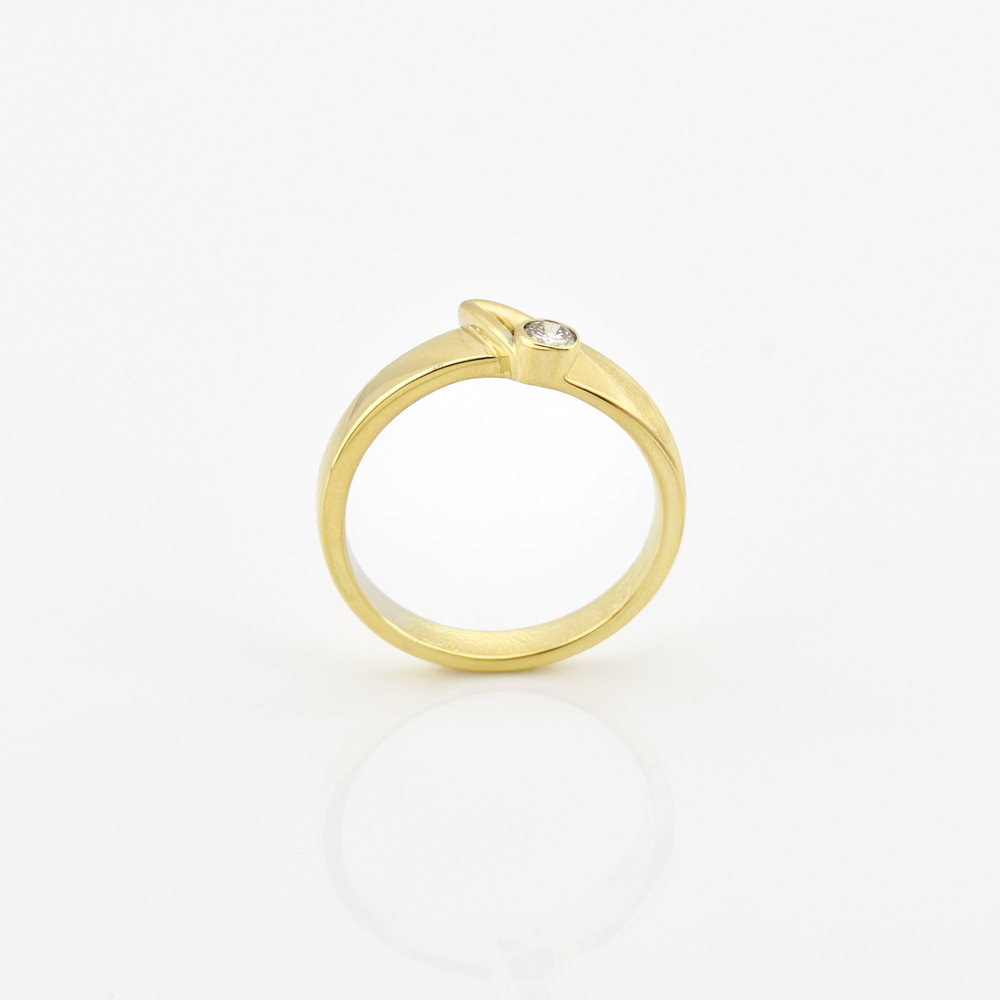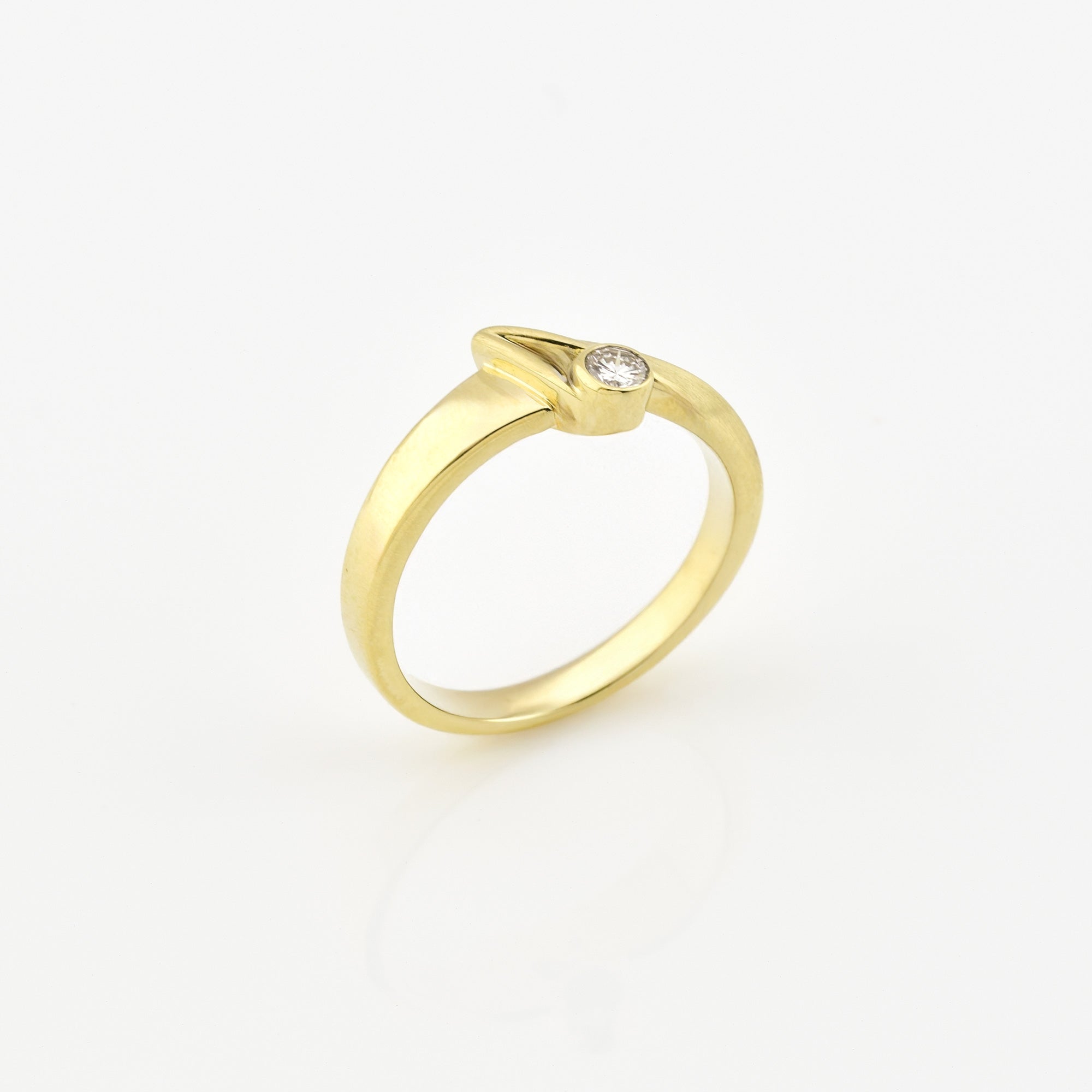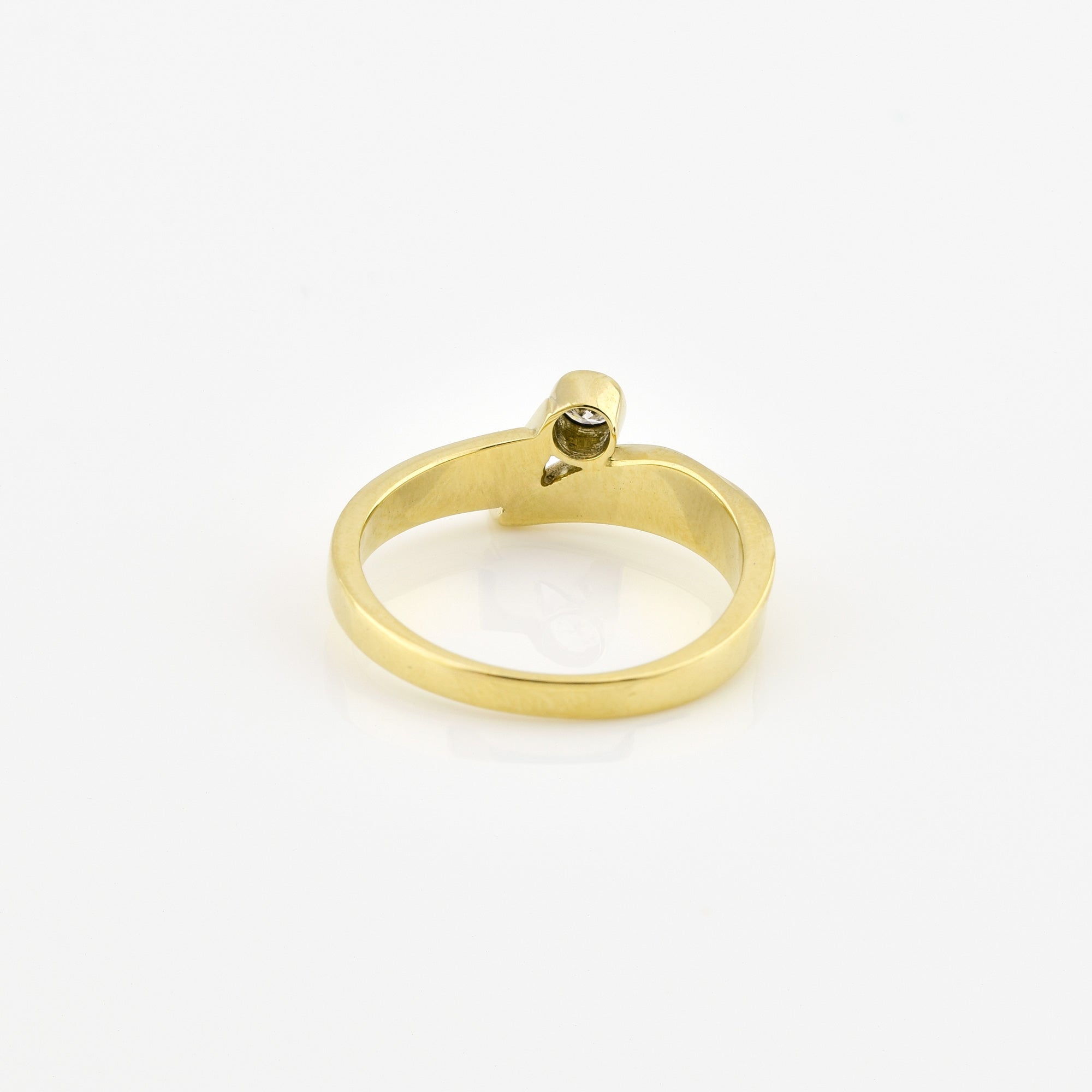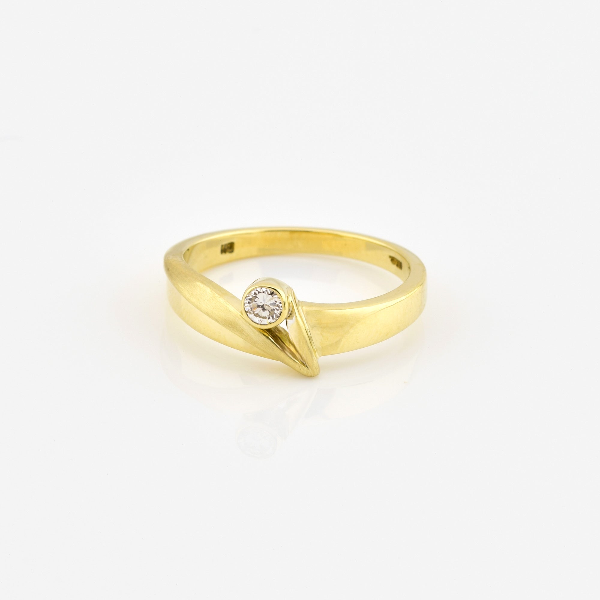 Bei dem Schmuckstück handelt es sich um einen Ring aus 585 Gelbgold mit einem Brillanten von ca. 0,11 ct in der Qualität Weiß mit kleinen Einschlüssen (W/si).
