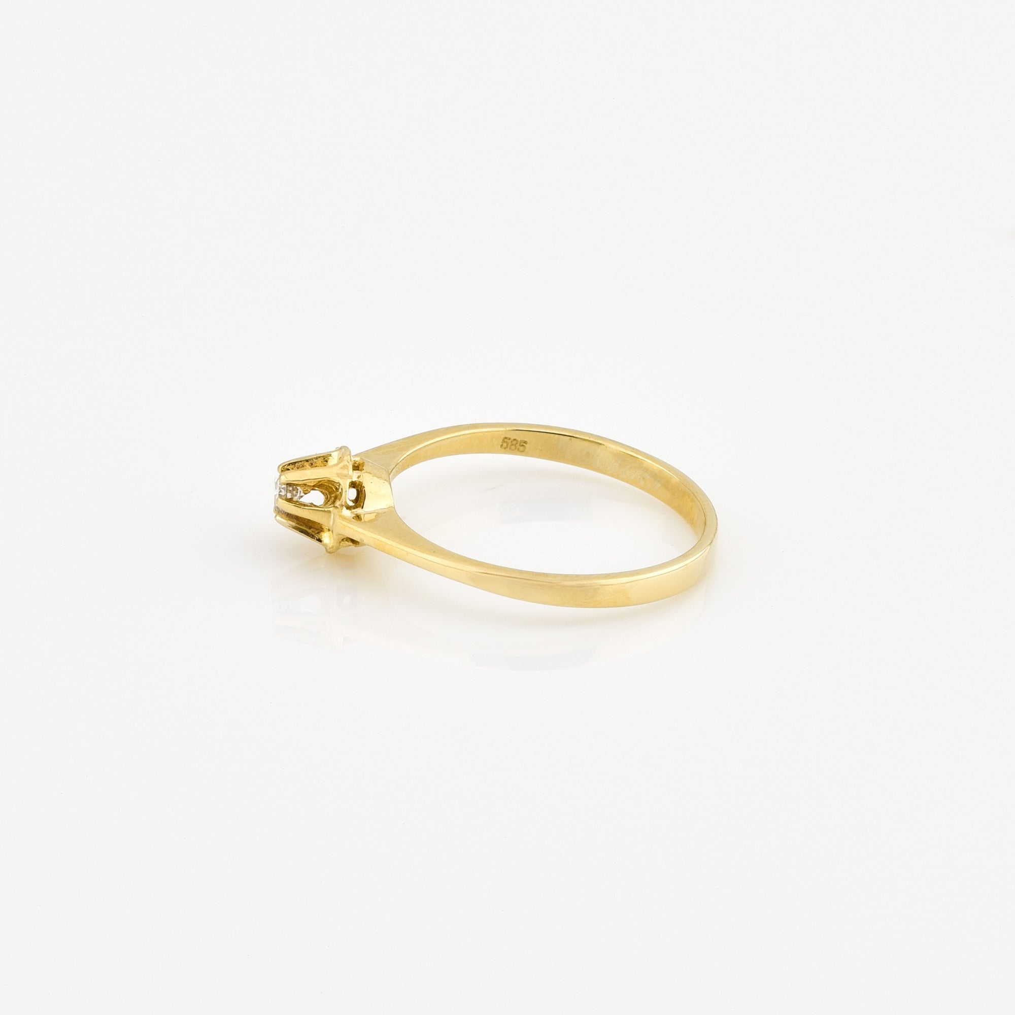 Bei dem Schmuckstück handelt es sich um einen Solitärring aus 585 Gelbgold mit einem Brillanten von ca. 0,03 ct in der Qualität Weiß und piqué 1 (W/p 1).
