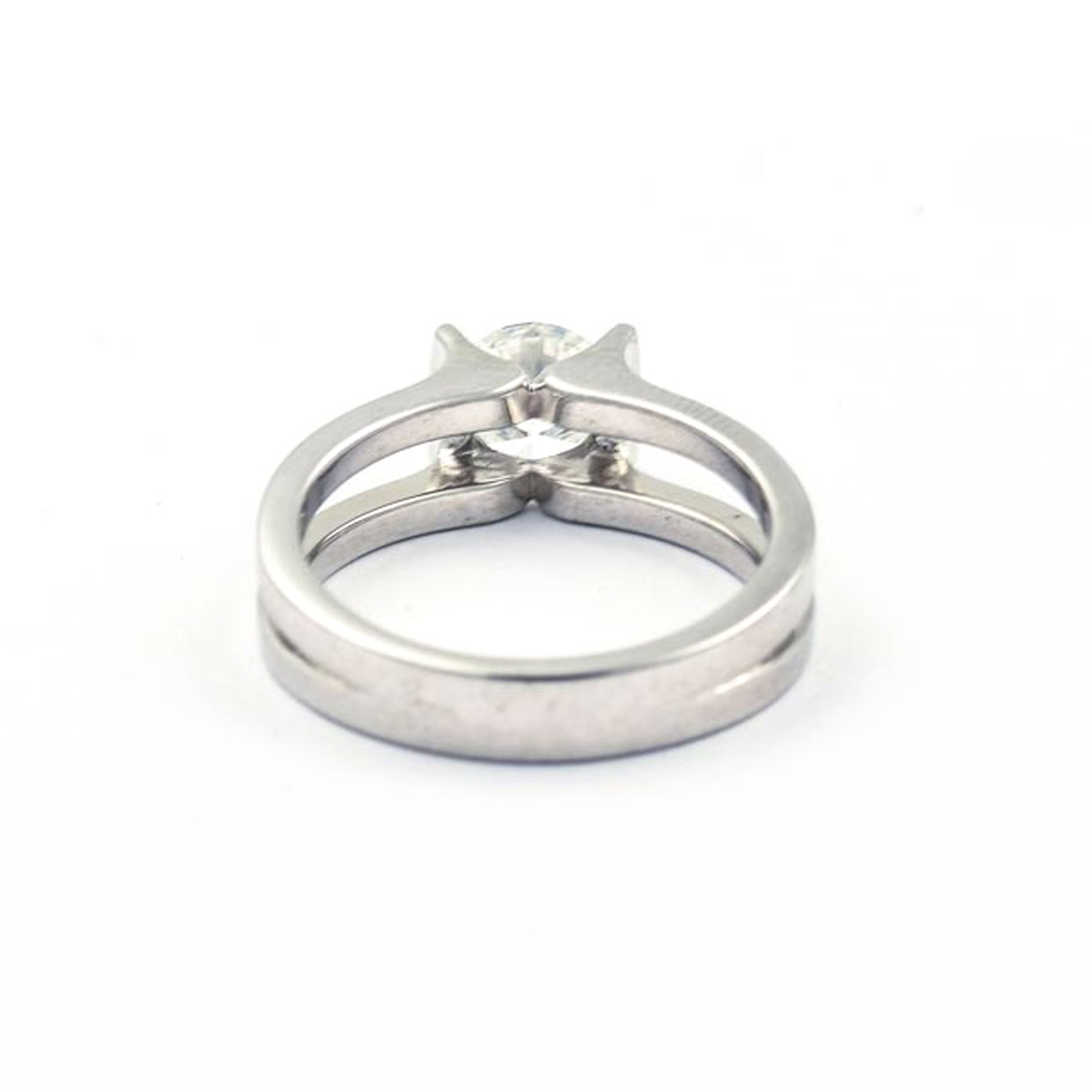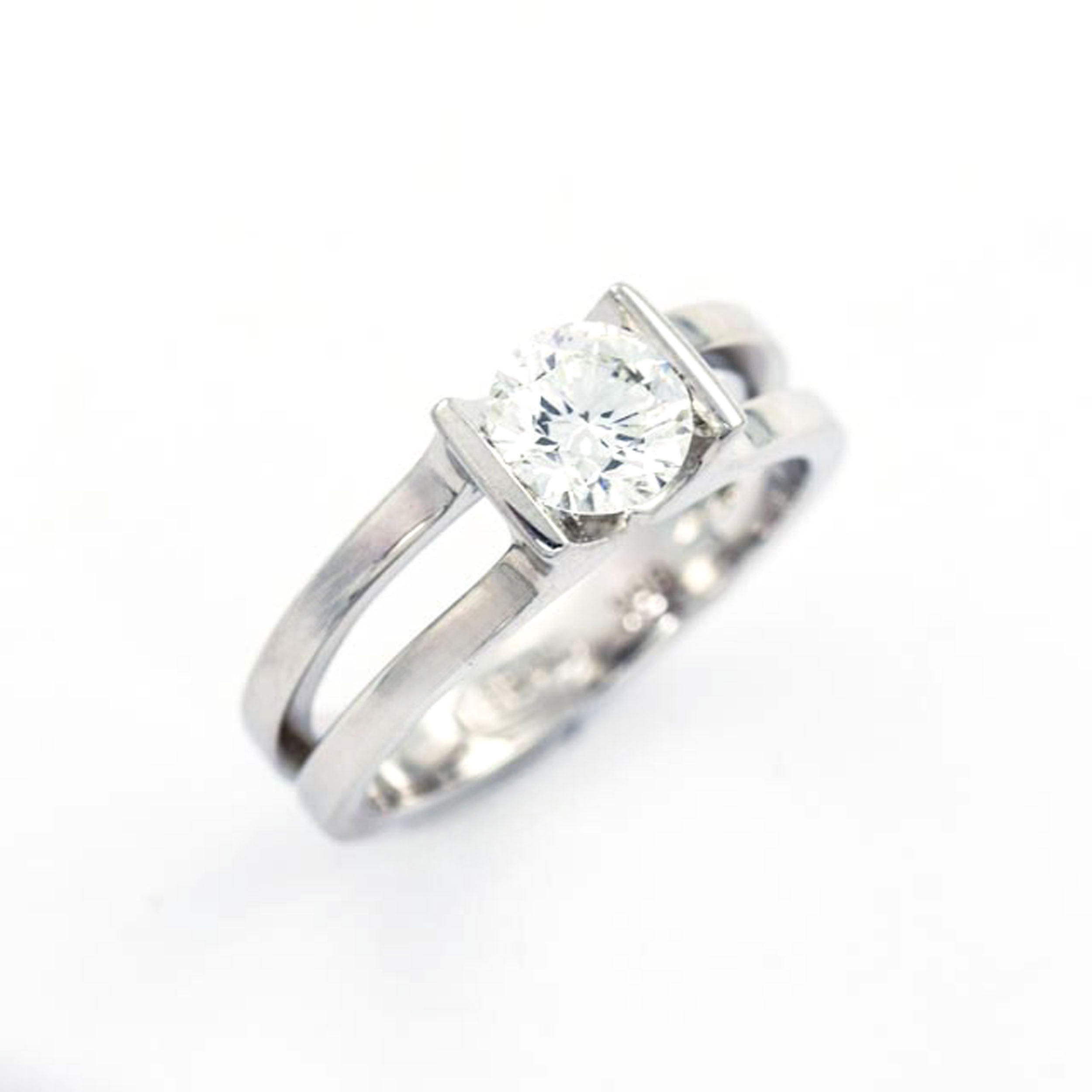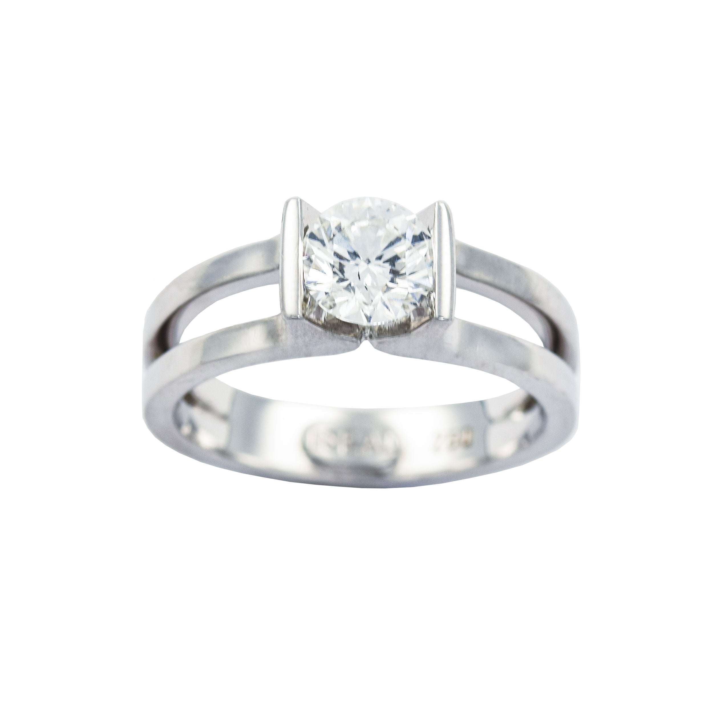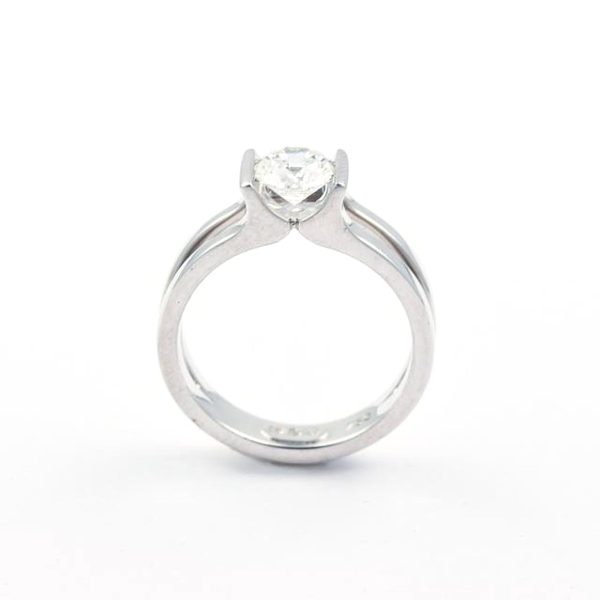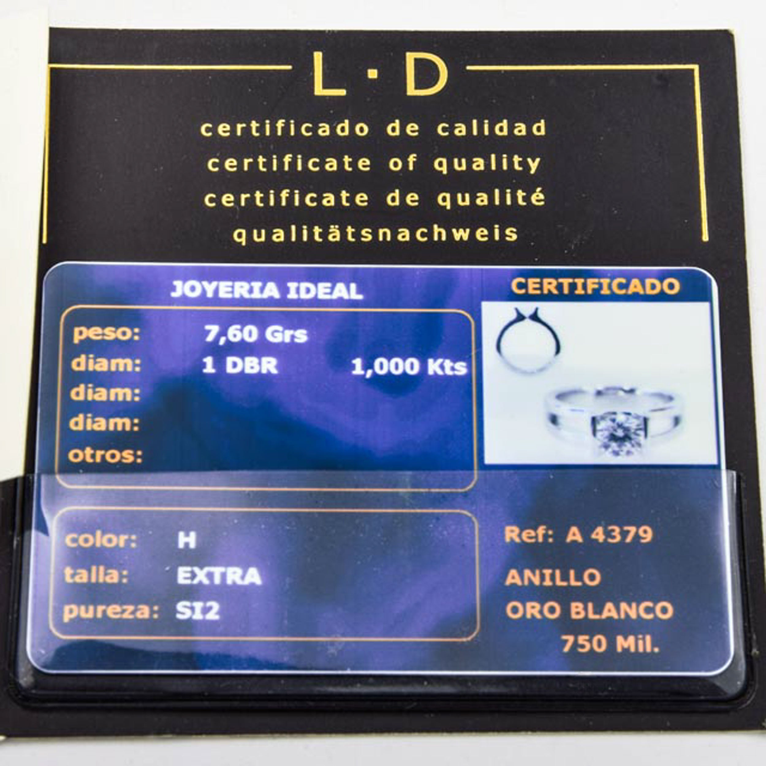 Bei dem Schmuckstück handelt es sich um einen Solitärring aus 750 Weißgold mit einem Brillanten von ca. 1 ct in der Qualität Weiß mit kleinen Einschlüssen (W/si).