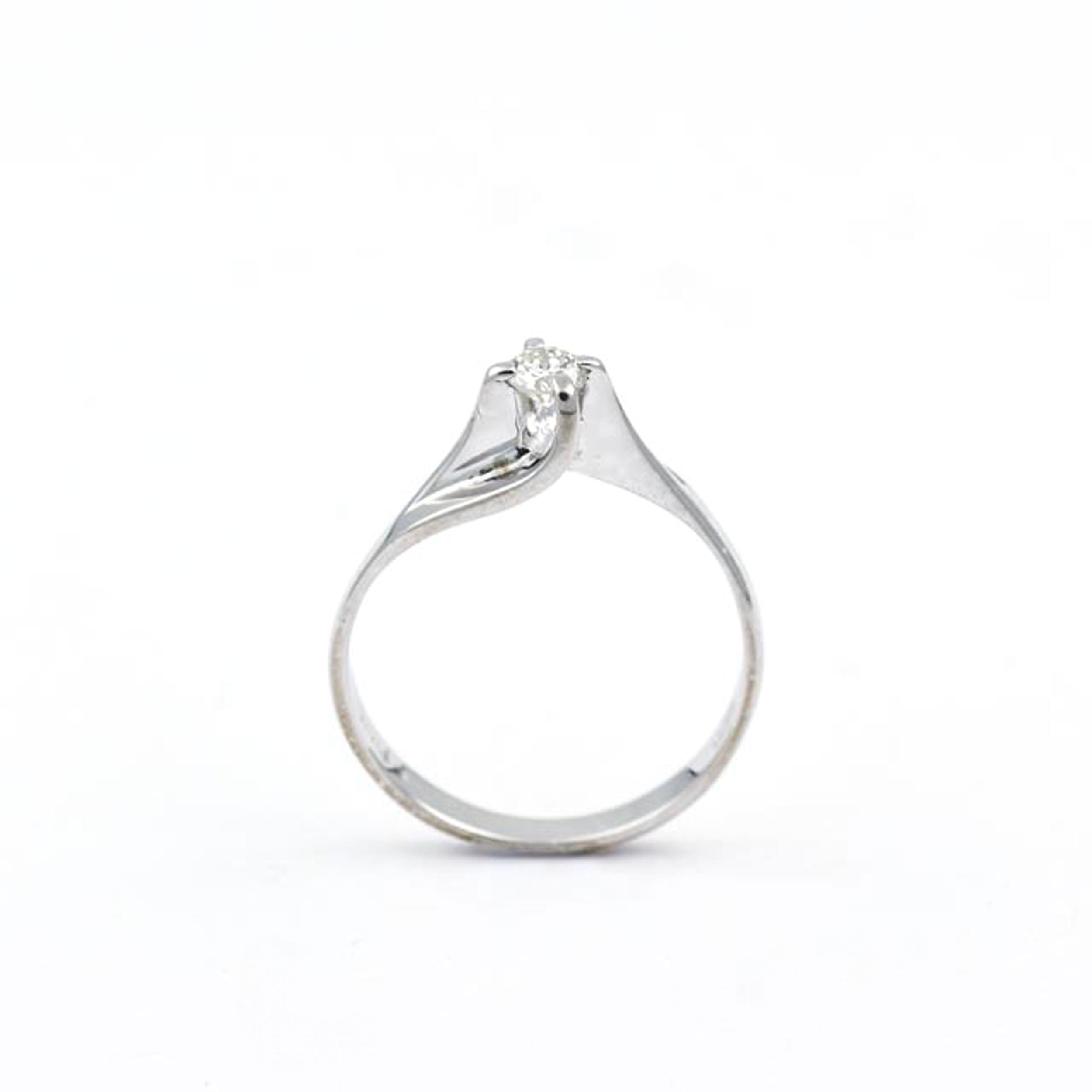 Bei dem Schmuckstück handelt es sich um einen Solitärring aus 585 Weißgold mit einem Brillanten von ca. 0,15 ct in der Qualität getönt 2 mit sehr kleinen Einschlüssen (Cape/vs).