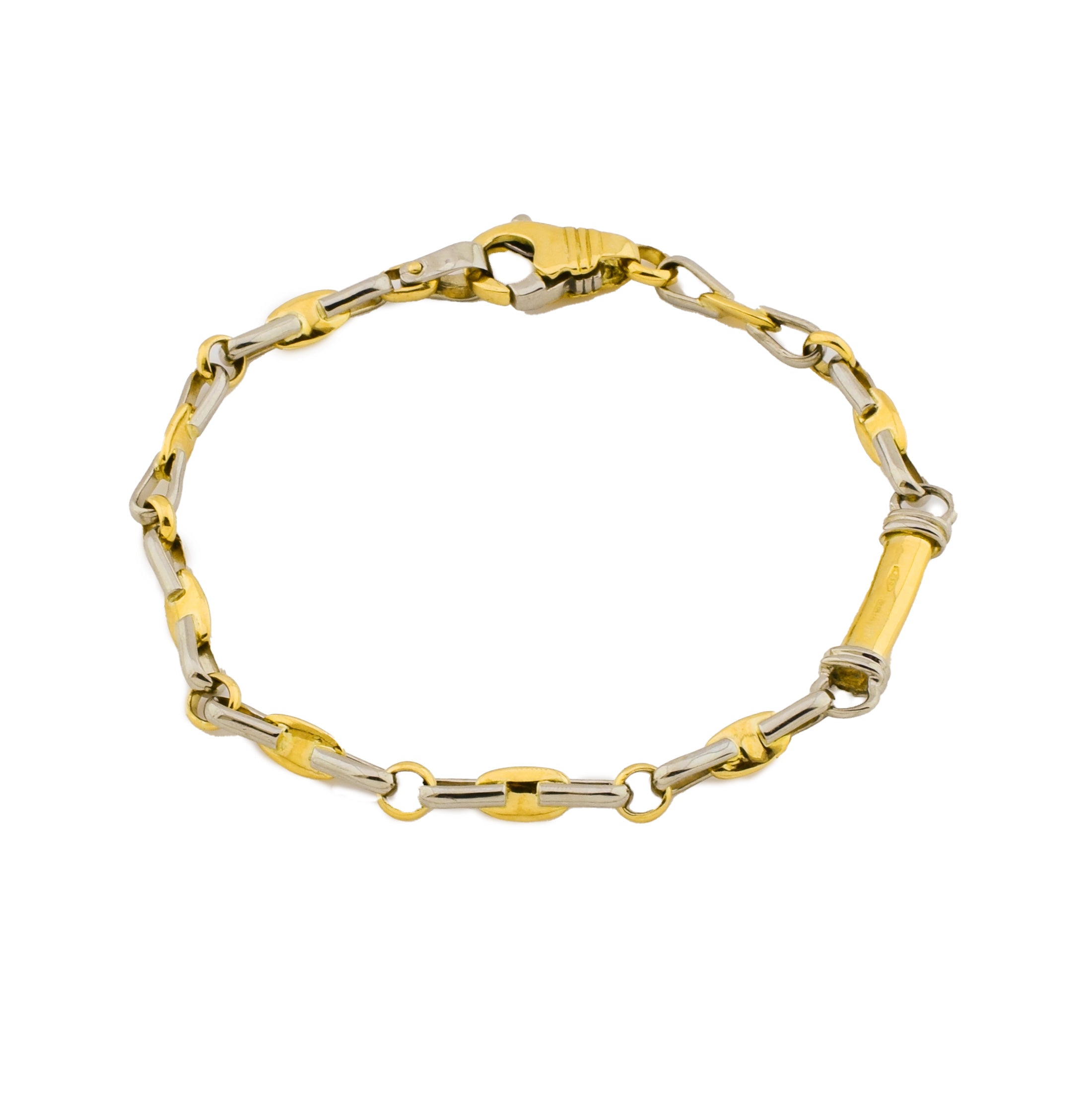 Bei dem Schmuckstück handelt es sich um ein Armband aus 750 Gelb- und Weißgold. Das Schmuckstück hat eine Gesamtlänge von 18 cm.