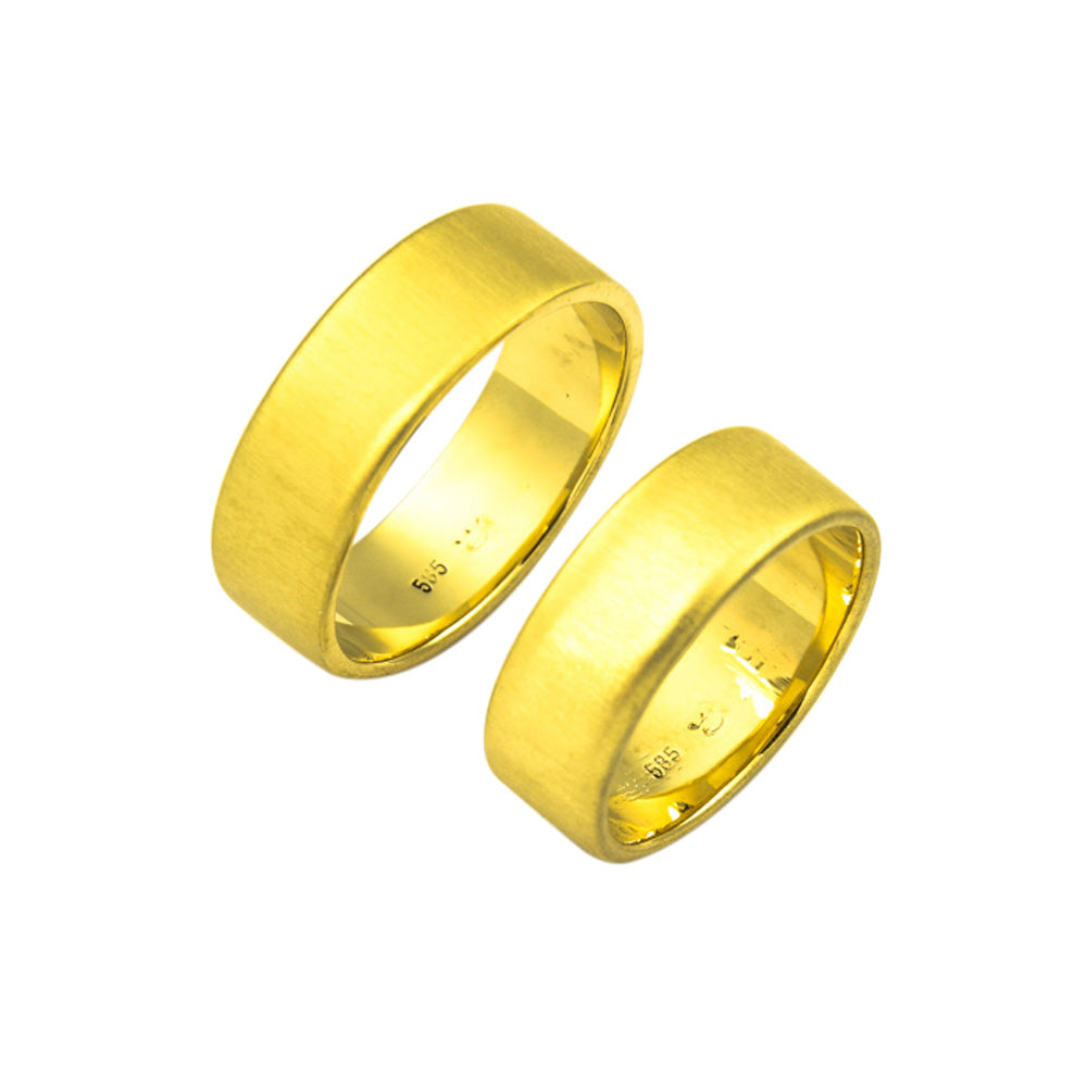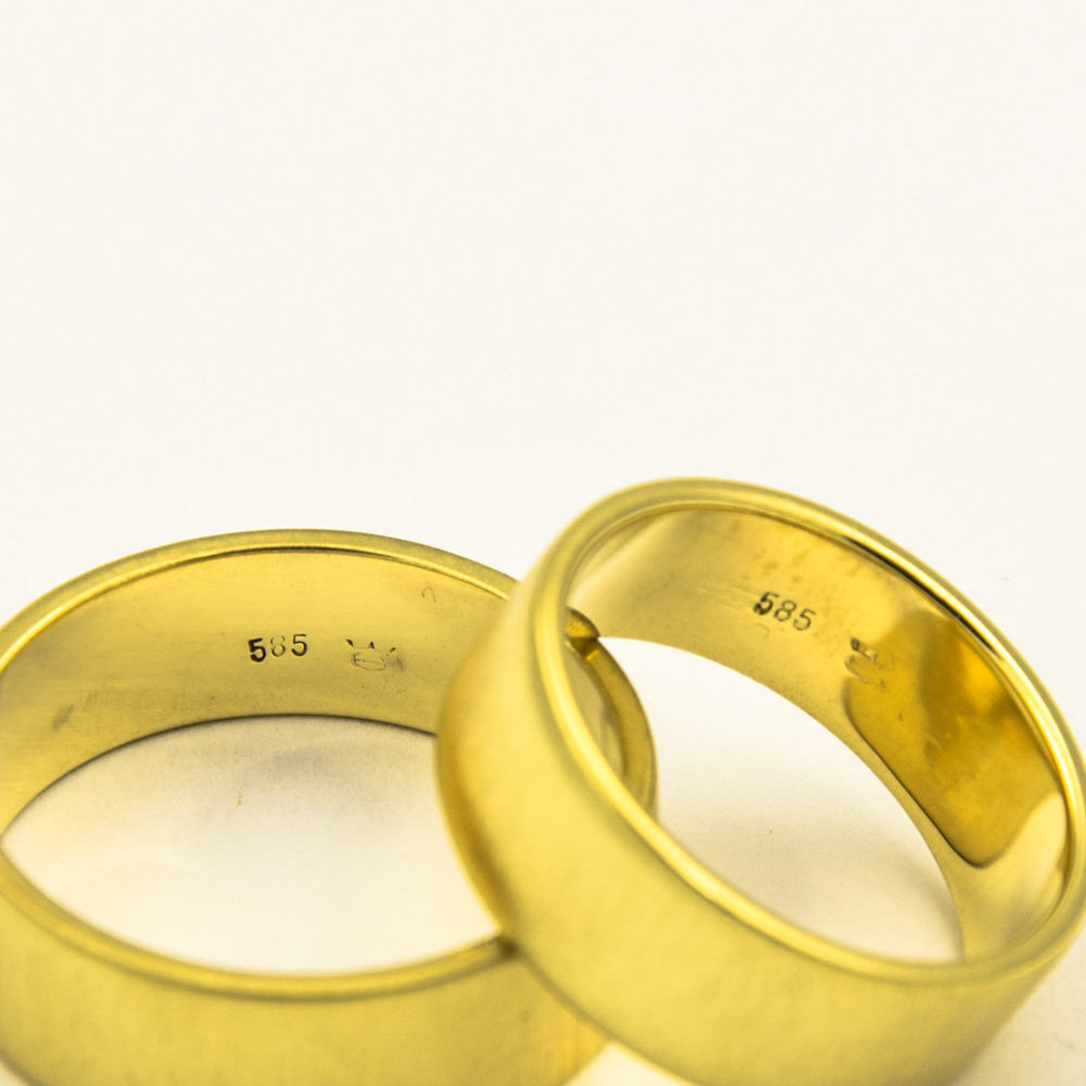 Bei dem Schmuckstück handelt es sich um ein Paar Trauringe aus 585 Gelbgold.