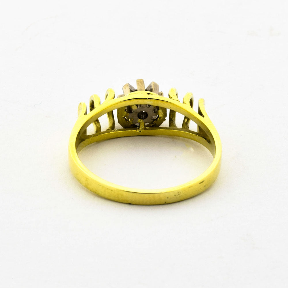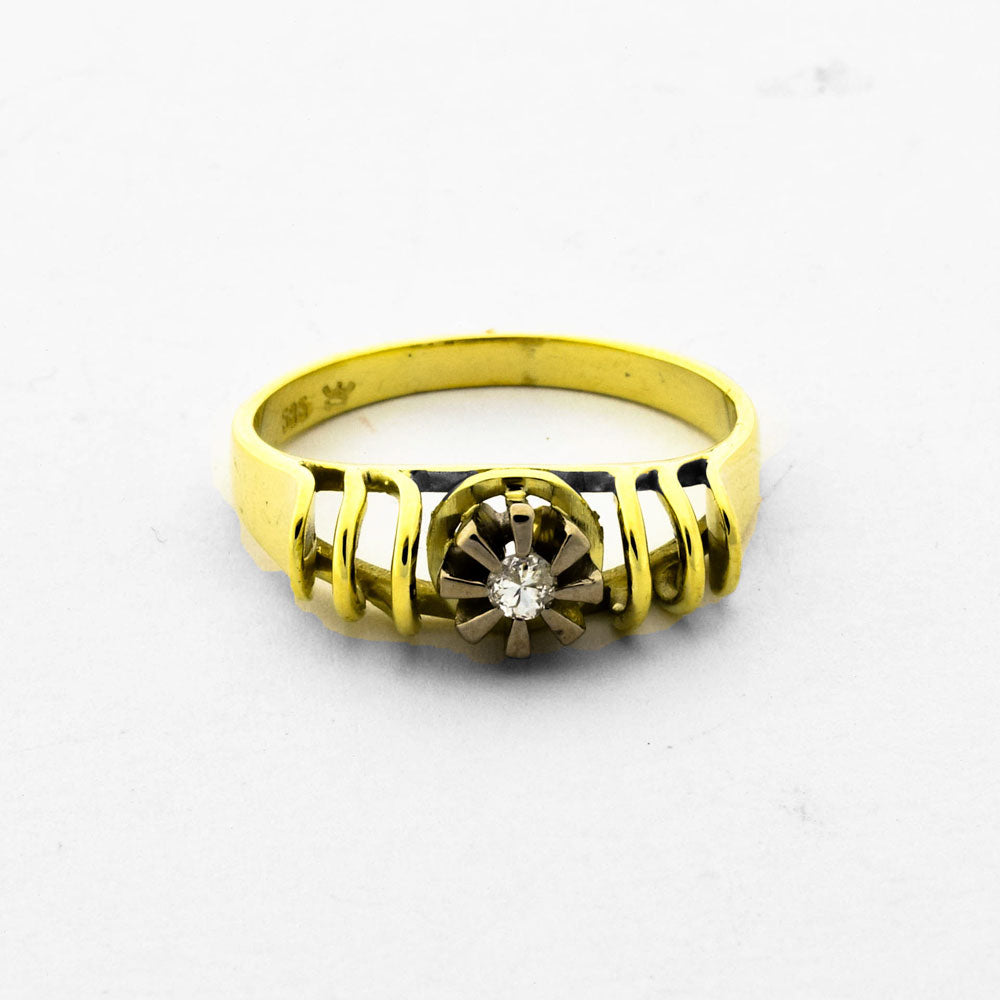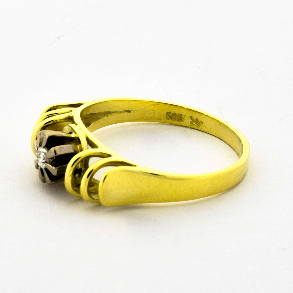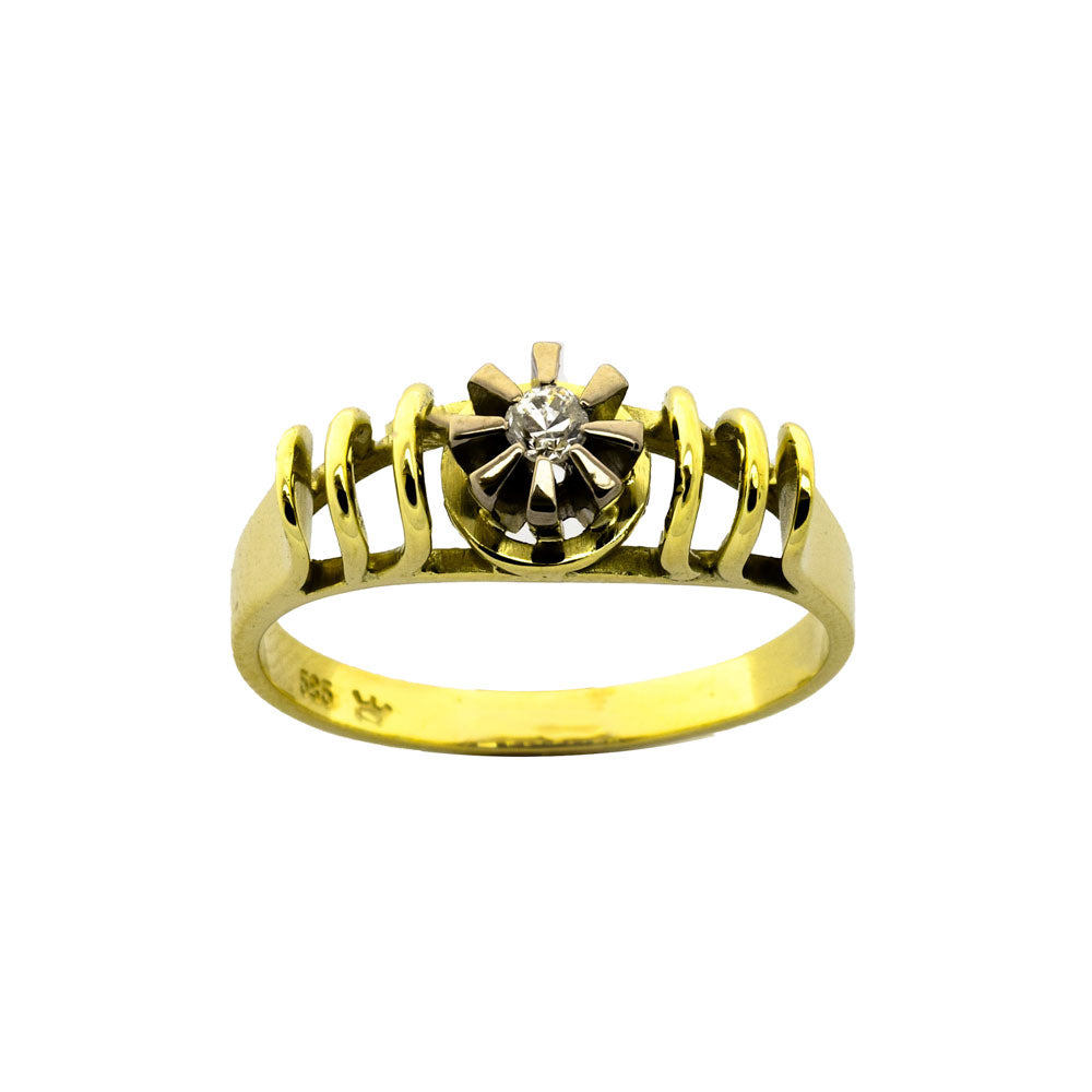 Bei dem Schmuckstück handelt es sich um einen Ring aus 585 Gelb- und Weißgold mit einem Diamanten im 8/8 Schliff von ca. 0,07 ct in der Qualität getönt 1 mit kleinen Einschlüssen (TCape/si).