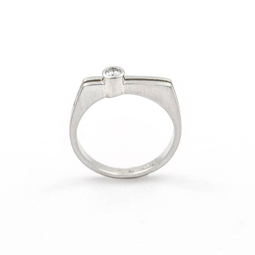 Bei dem Schmuckstück handelt es sich um einen Ring aus 950 Platin mit einem Brillanten von ca. 0,1 ct in der Qualität Weiß mit sehr kleinen Einschlüssen (W/vs).