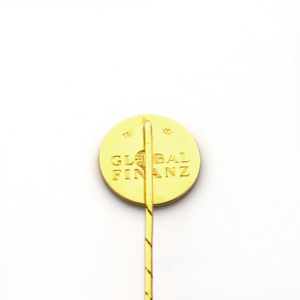 Bei dem Schmuckstück handelt es sich um eine Anstecknadel "Globus" von Juwelier Hild aus 750 Gelbgold.