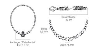 Gesamtlänge: Die Gesamtlänge wird mit Karabiner bzw. mit Schließe gemessen und wird in cm angeben.