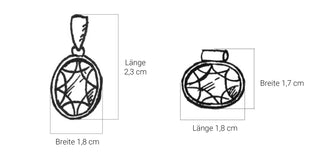 Anhänger/ Zwischenteil: Alle Anhänger werden mit Öse gemessen. Länge x Breite werden in cm angegeben.