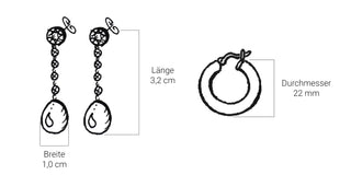 Breite: Bei einem runden Ohrschmuck wird die Breite zusätzlich gemessen, sie wird in cm angegeben.