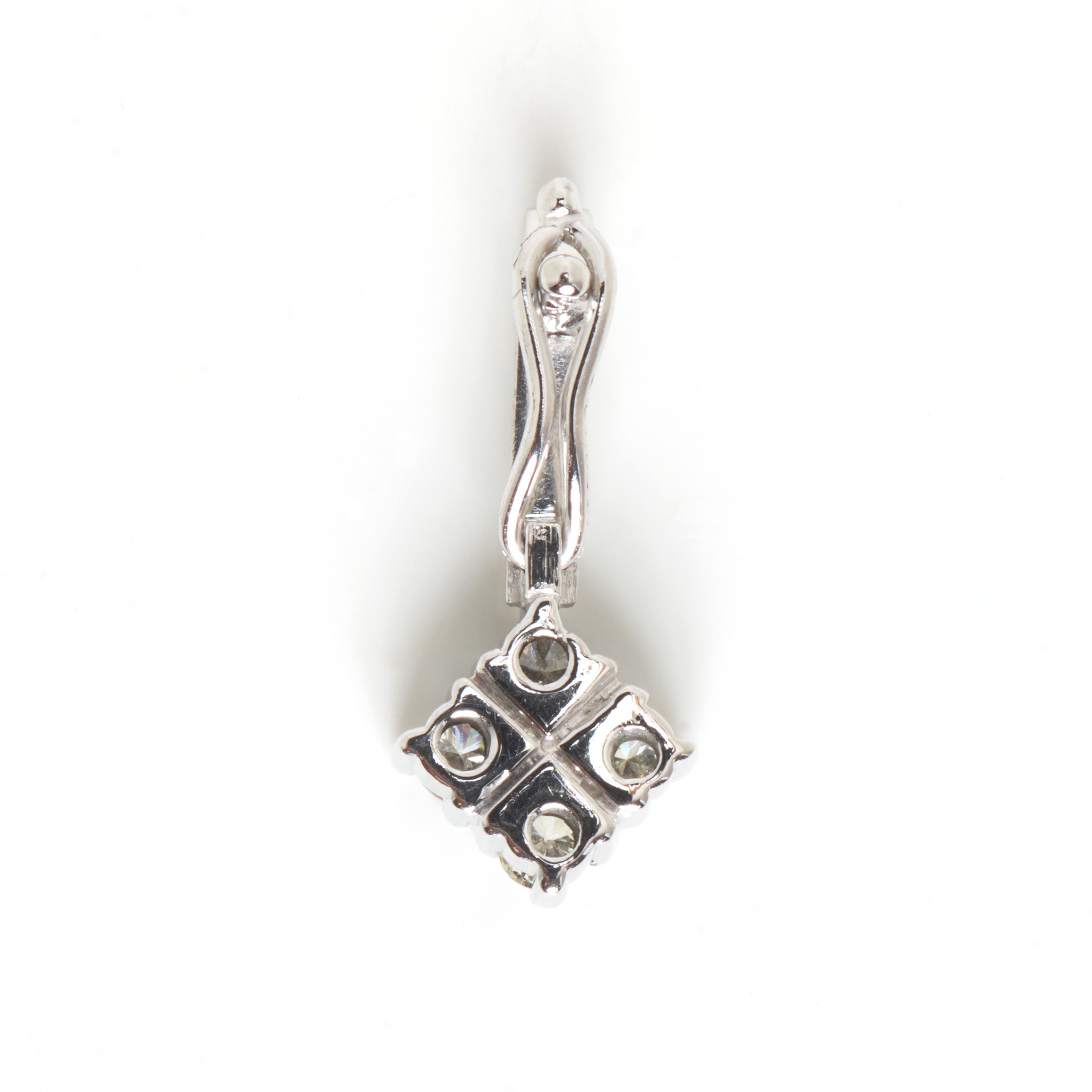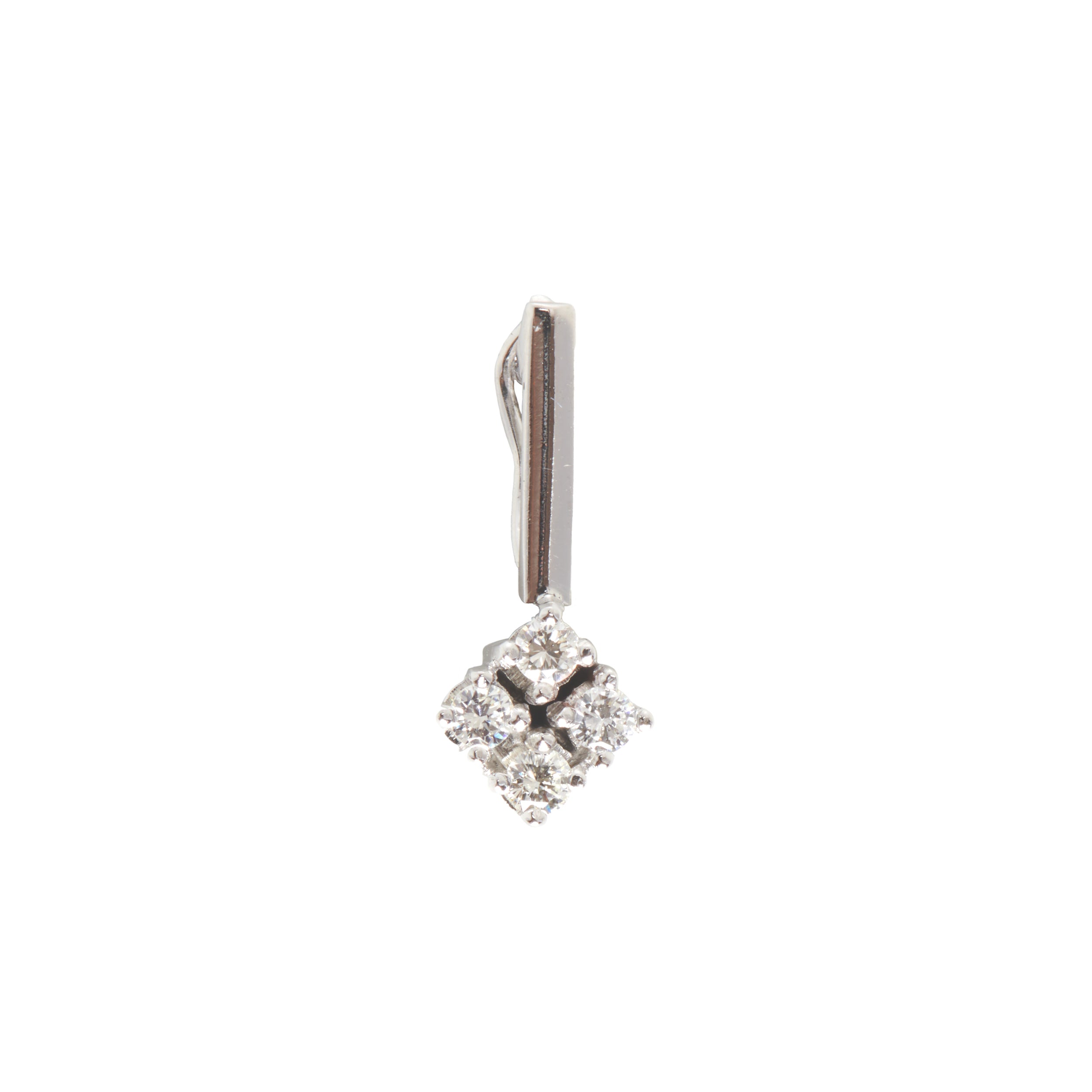 Bei dem Schmuckstück handelt es sich um einen An-/Einhänger aus 585 Weißgold mit vier Brillanten von zusammen ca. 0,16 ct in der Qualität Weiß mit kleinen Einschlüssen (W/si).