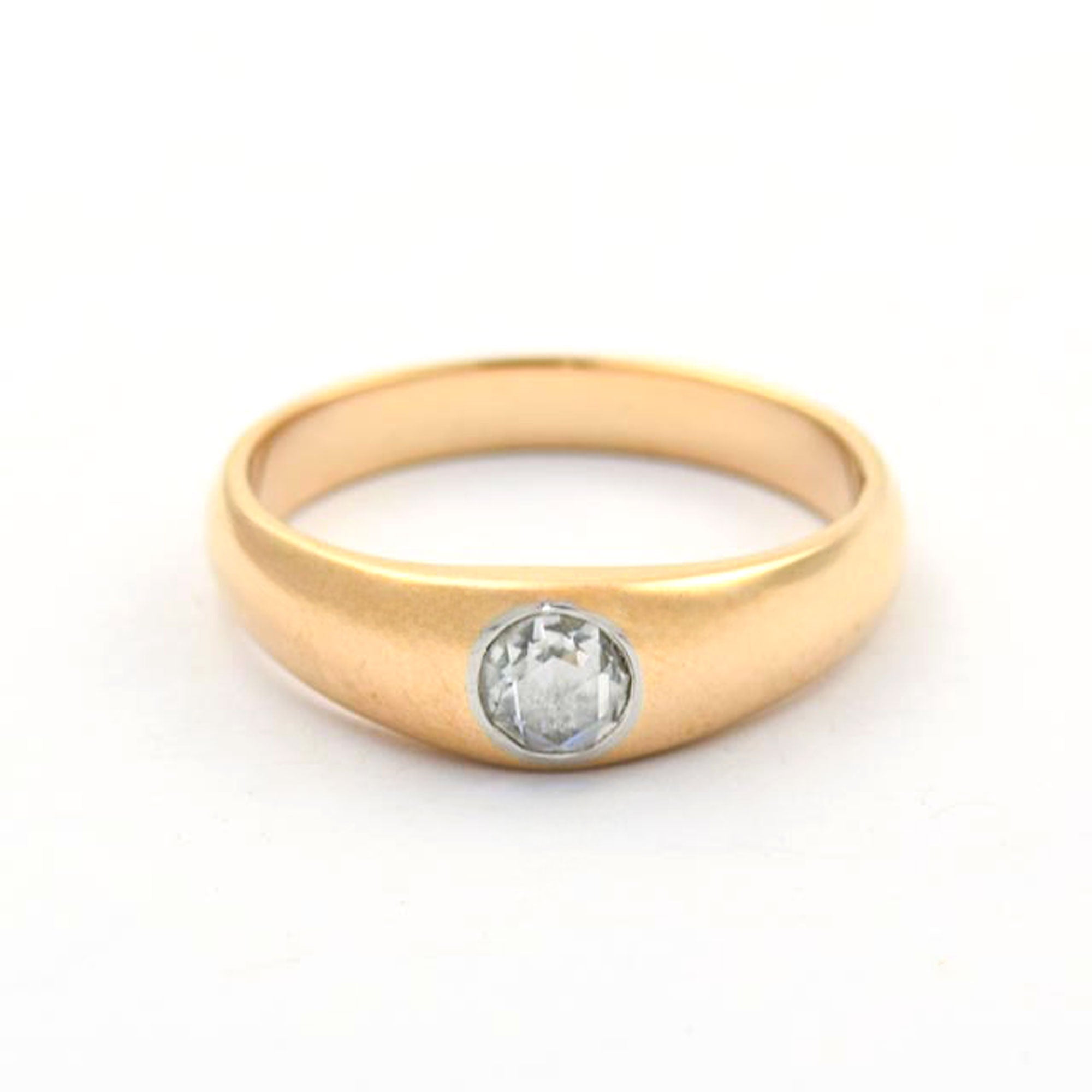 Bei dem Schmuckstück handelt es sich um einen Bandring aus 585 Roségold/Platin mit einer Diamantrose von ca. 0,25 ct .
