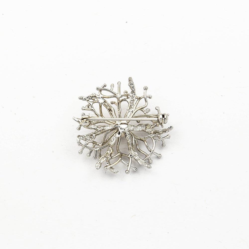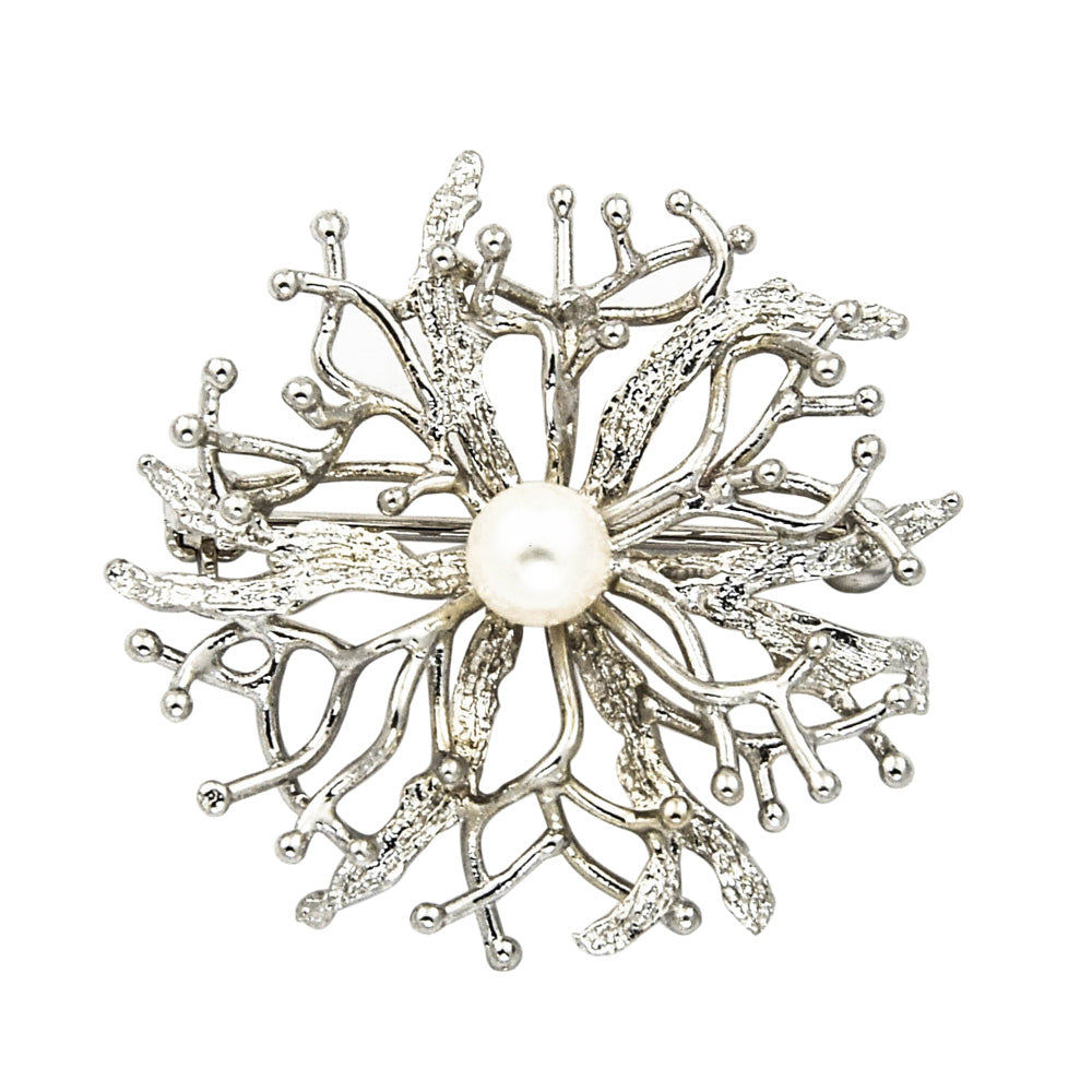 Bei dem Schmuckstück handelt es sich um eine Brosche aus 585 Weißgold mit einer Zuchtperle.
