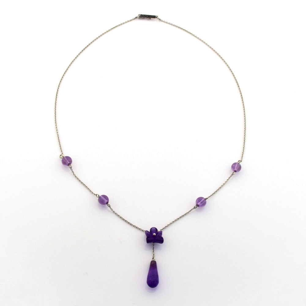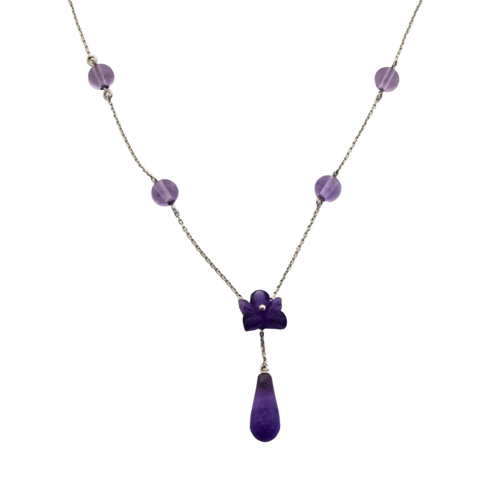 Collier Blüte aus Weißgold mit Amethyst, neuwertig