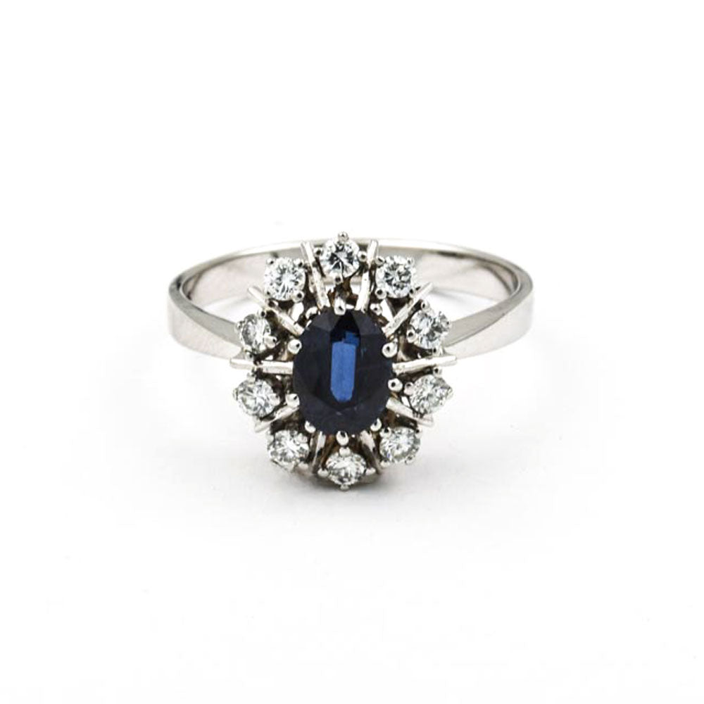Saphirring aus Weißgold mit Brillant