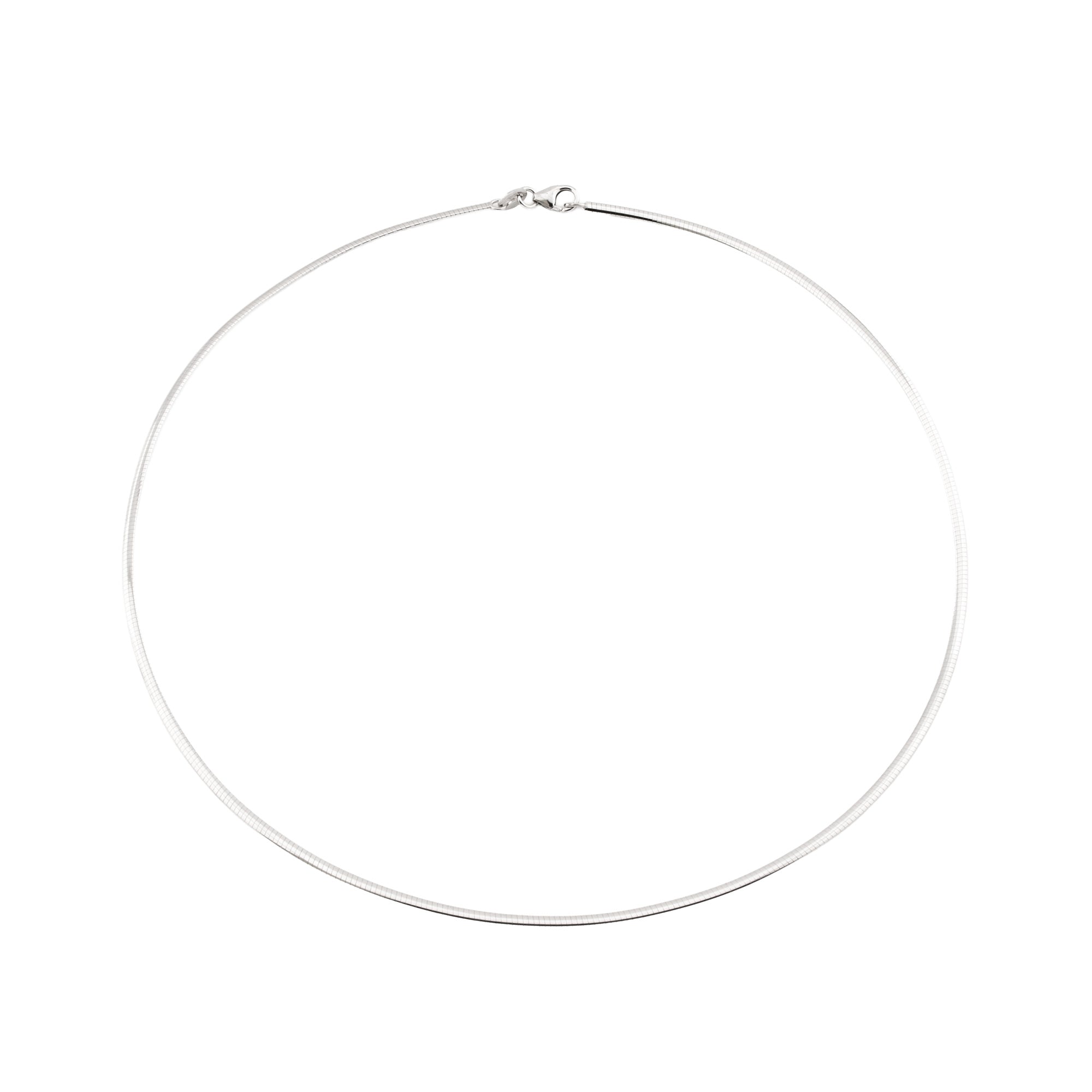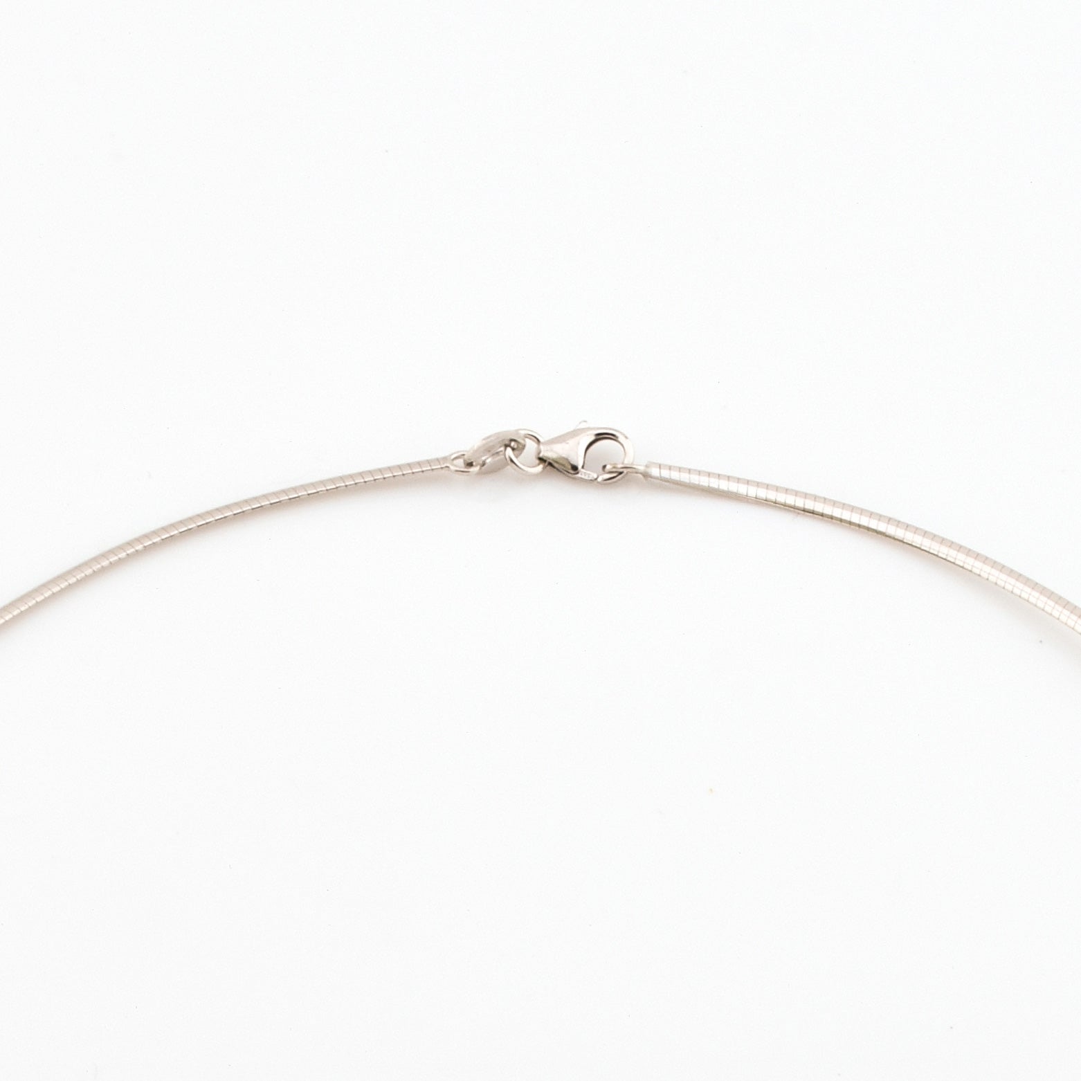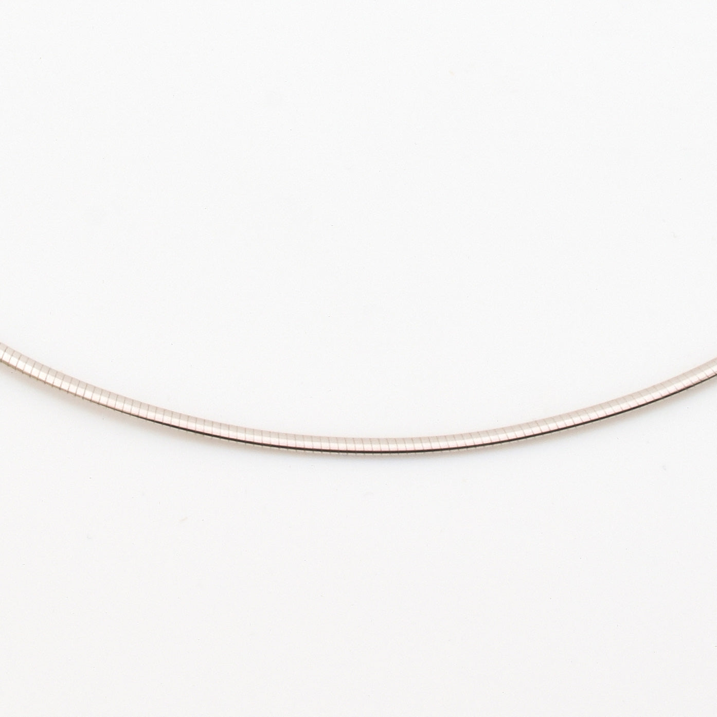 Bei dem Schmuckstück handelt es sich um einen Omegareif der Marke FBM aus 585 Weißgold. Das Schmuckstück hat eine Gesamtlänge von 41,5 cm.