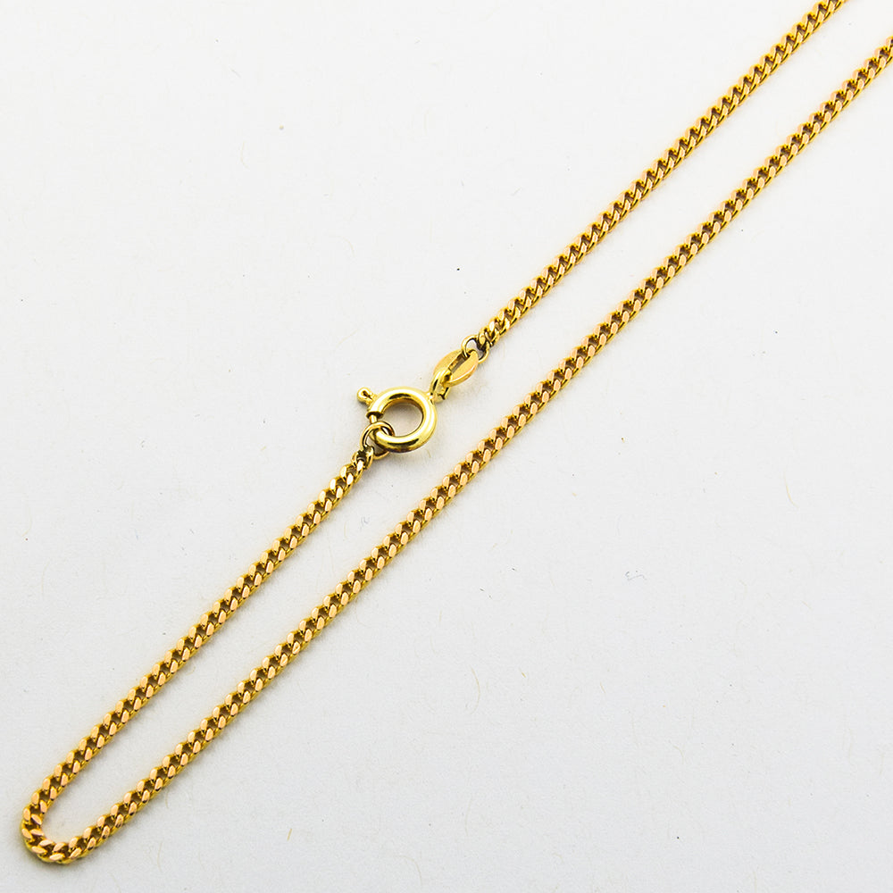 Bei dem Schmuckstück handelt es sich um eine Flachpanzerkette aus 585 Gelbgold. Das Schmuckstück hat eine Gesamtlänge von 61 cm.