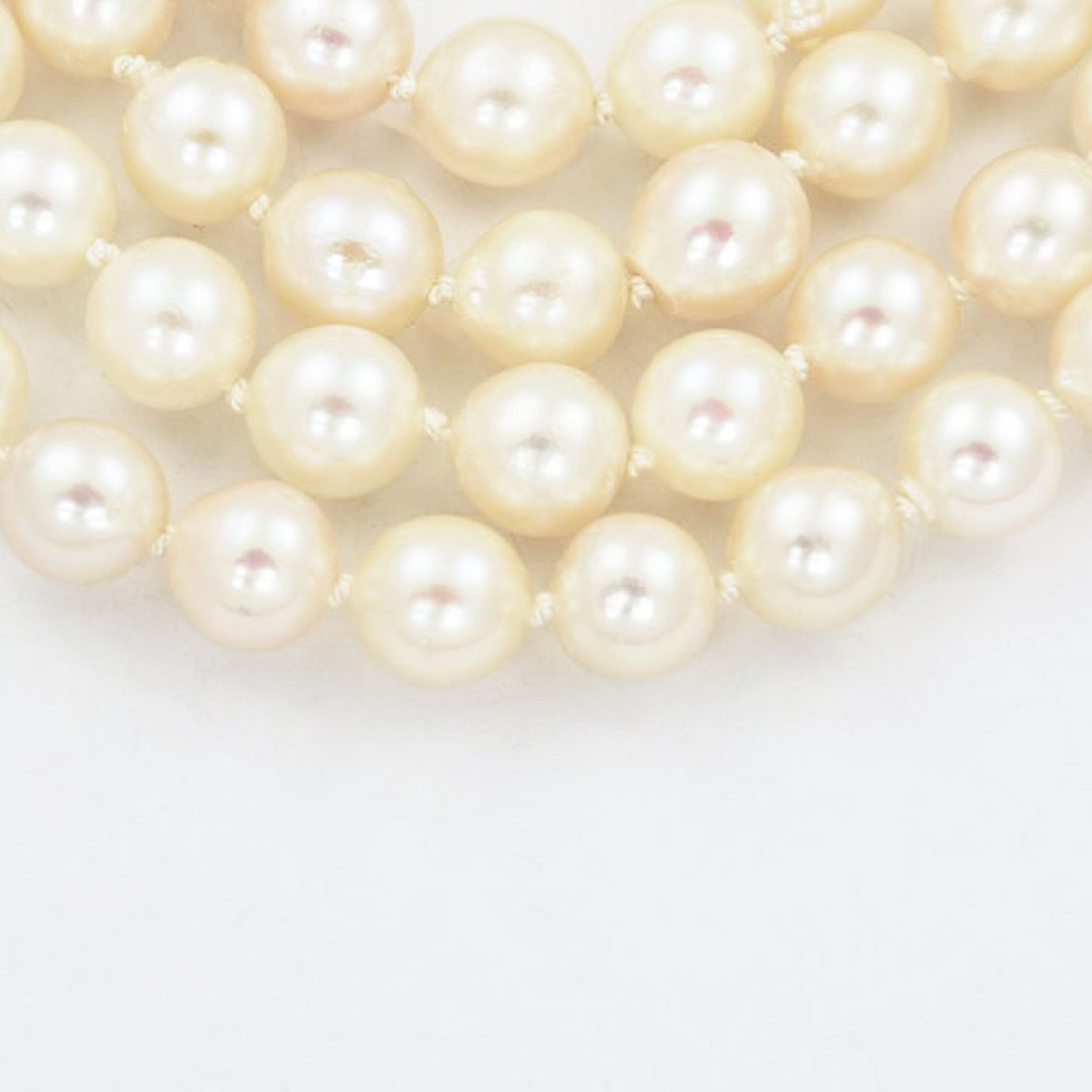 Bei dem Schmuckstück handelt es sich um eine Halskette aus Akoyazuchtperlen mit Schließe aus 585 Gelbgold. Das Schmuckstück hat eine Gesamtlänge von 45 cm.