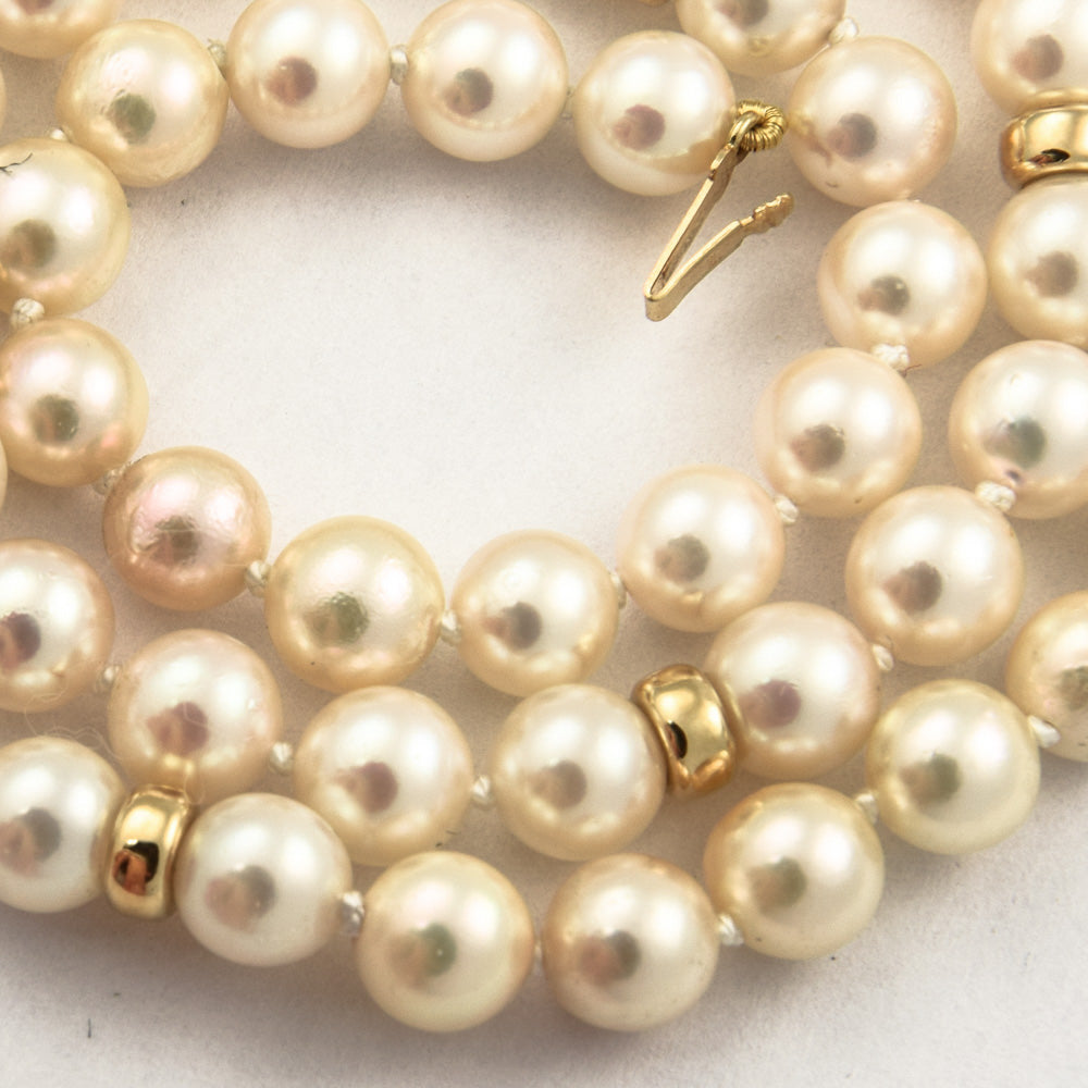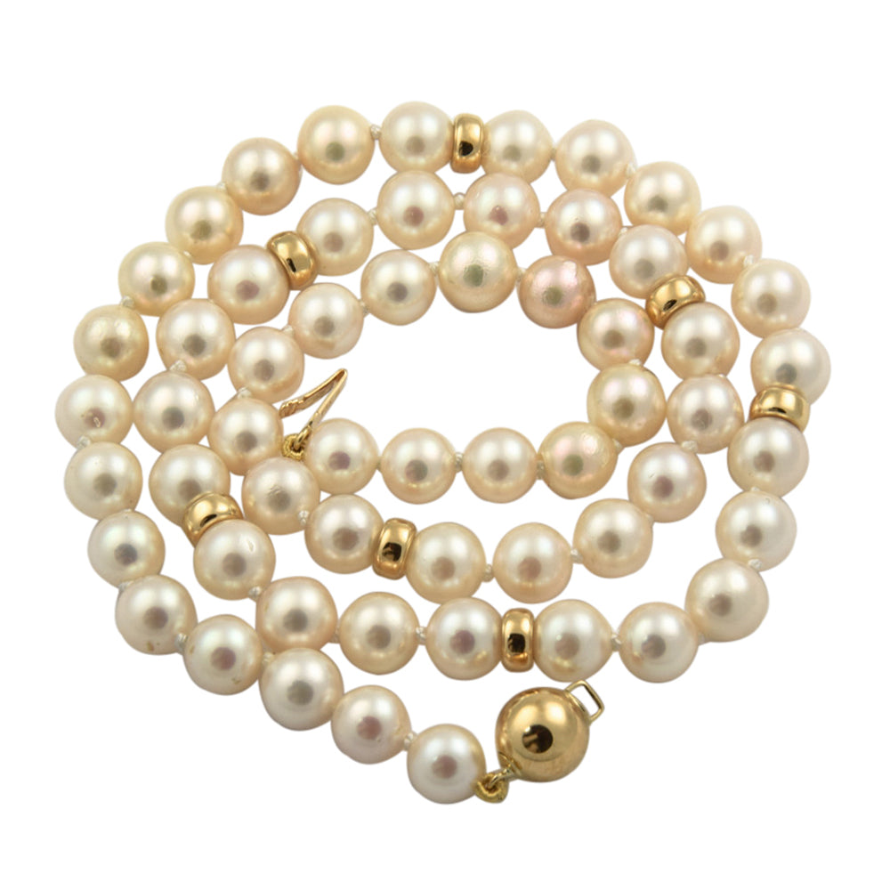 Perlenkette mit Kugelschließe und Zwischenteilen aus Gelbgold