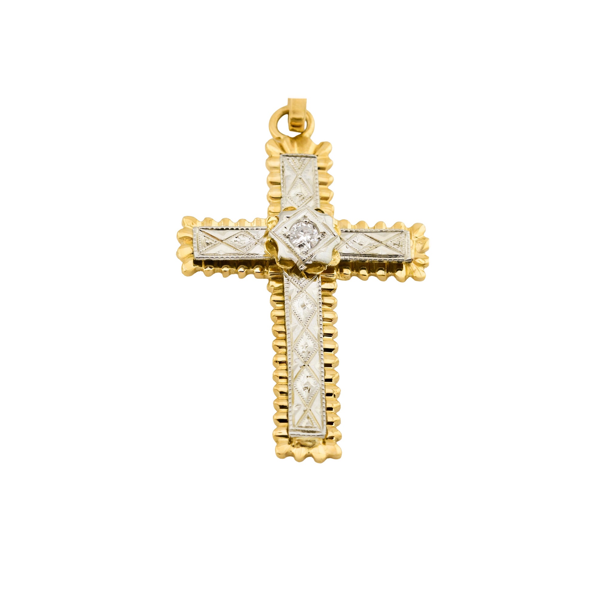 Kreuzanhänger aus Gelb- und Weißgold mit Brillant