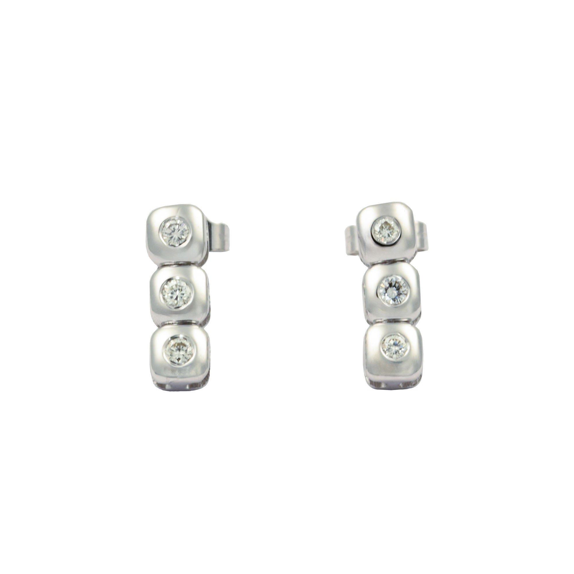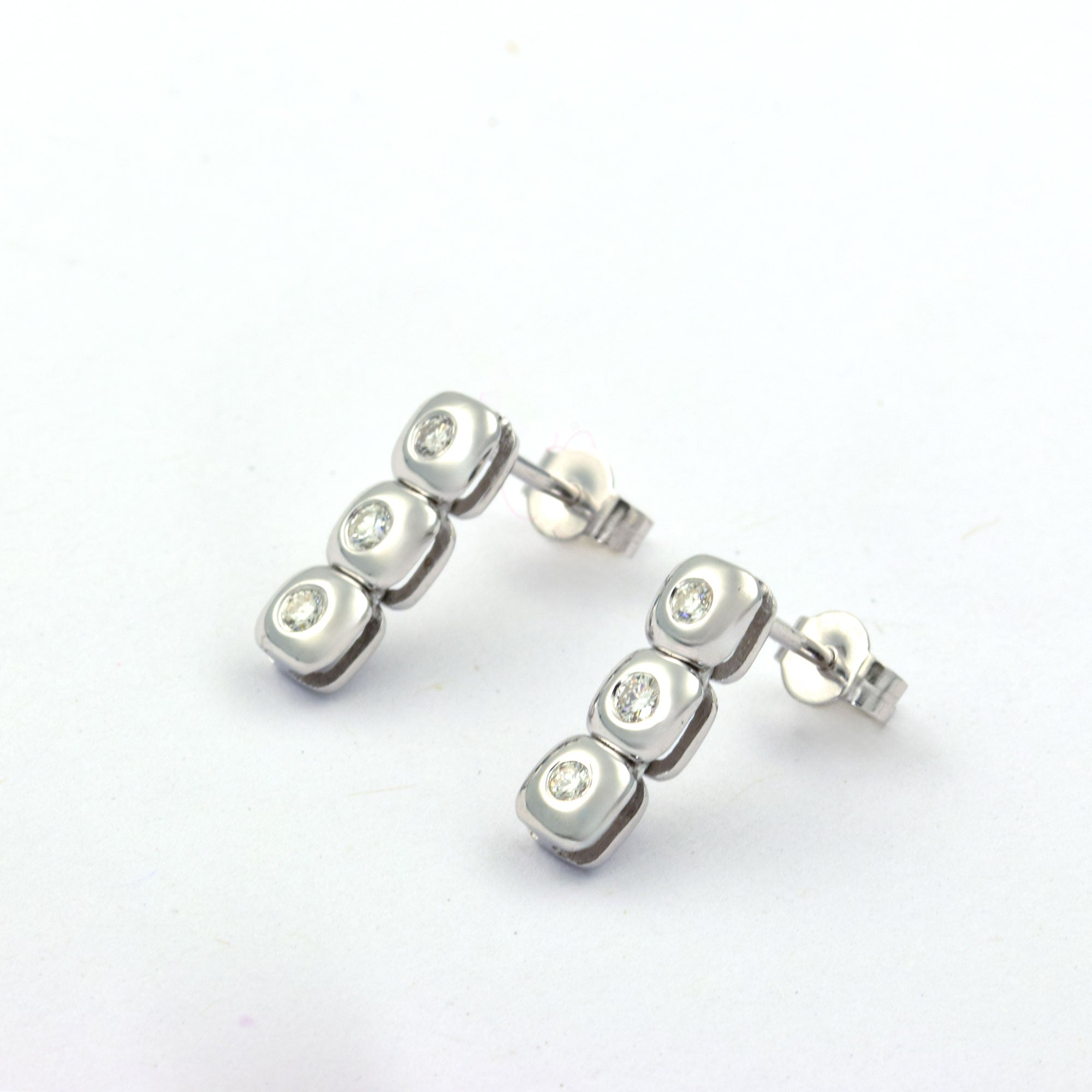 Bei dem Schmuckstück handelt es sich um ein Paar Ohrstecker aus 750 Weißgold mit sechs Brillanten von zusammen ca. 0,24 ct in der Qualität Weiß mit kleinen Einschlüssen (W/si).