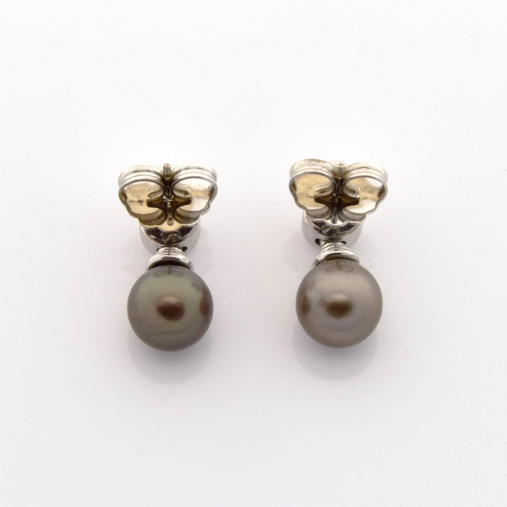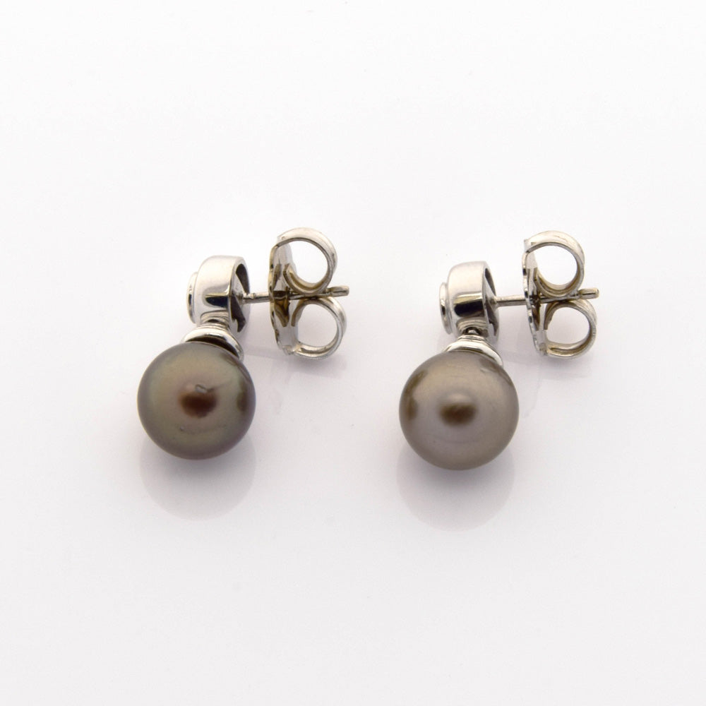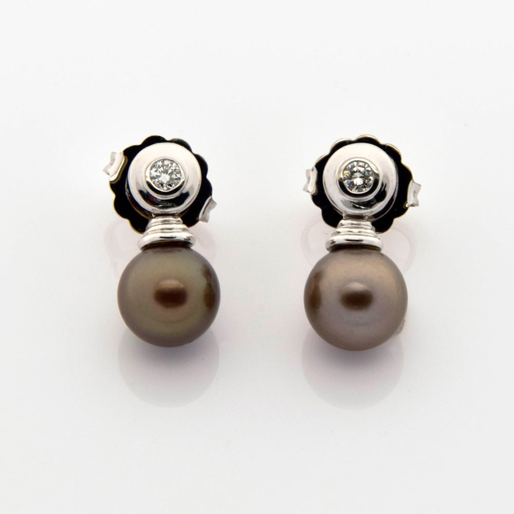 Bei dem Schmuckstück handelt es sich um ein Paar Ohrstecker aus 750 Weißgold mit zwei Tahitizuchtperlen und zwei Brillanten von zusammen ca. 0,26 ct in der Qualität Weiß mit kleinen Einschlüssen (W/si).