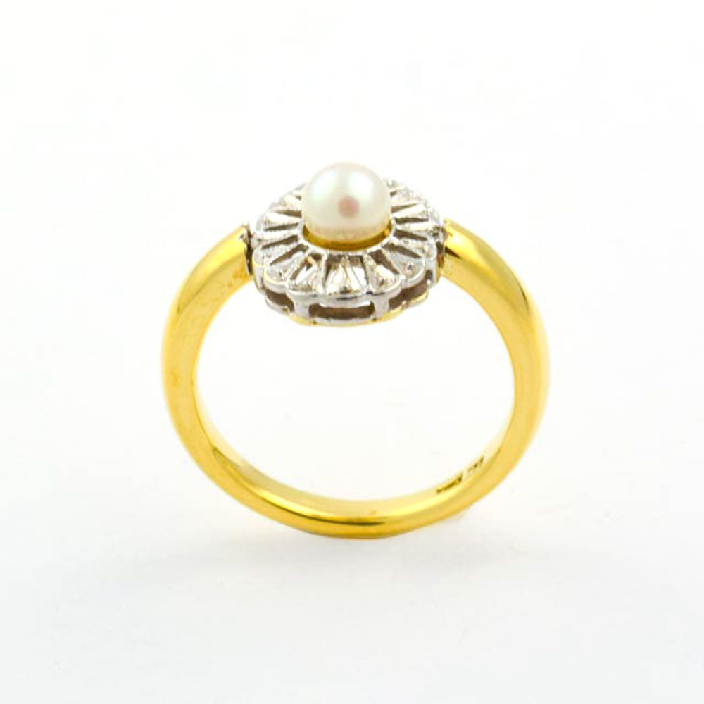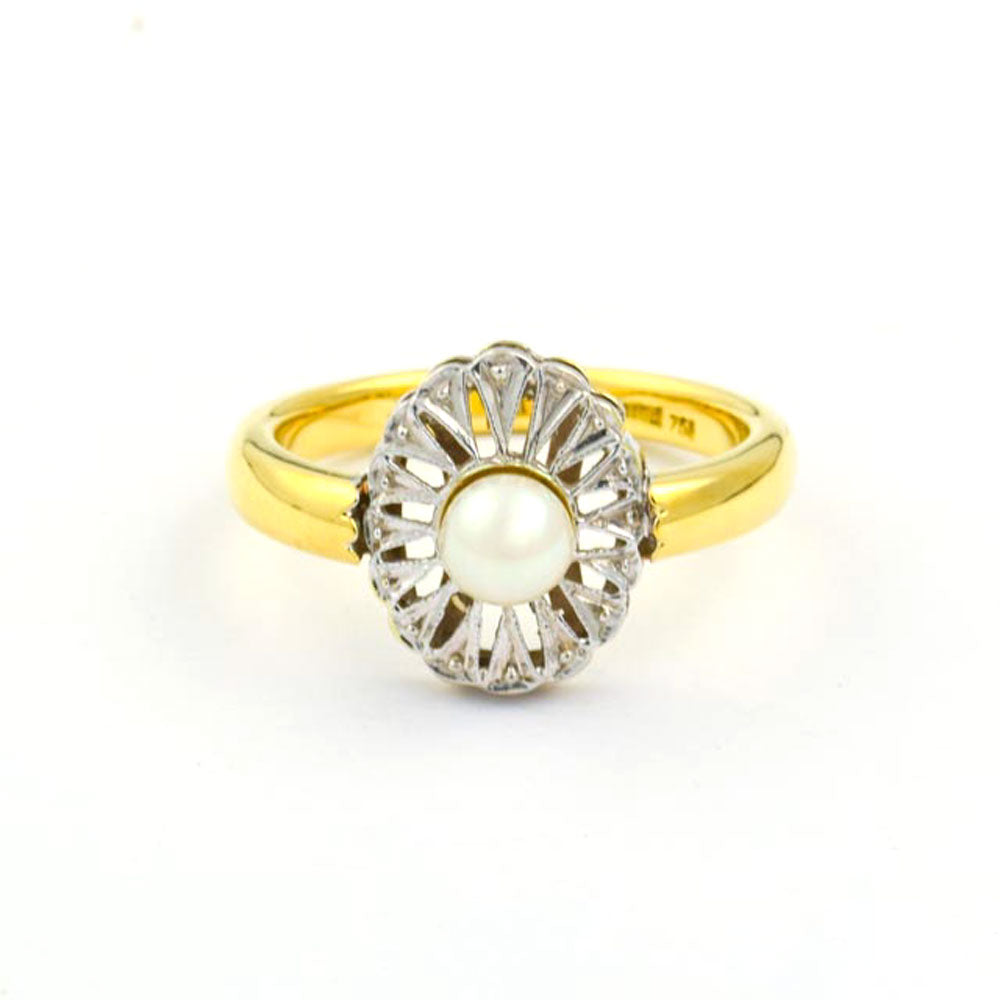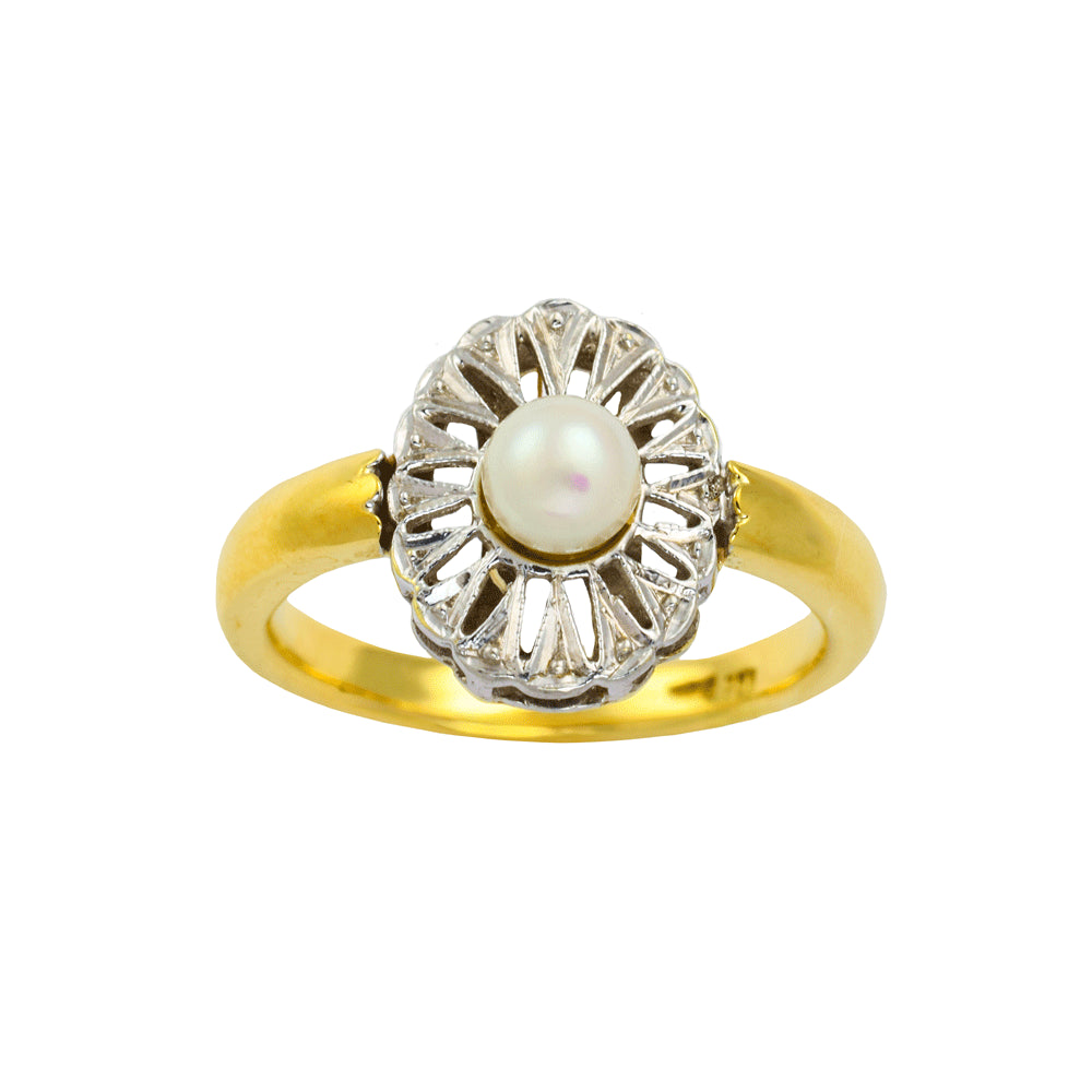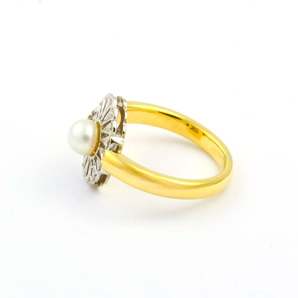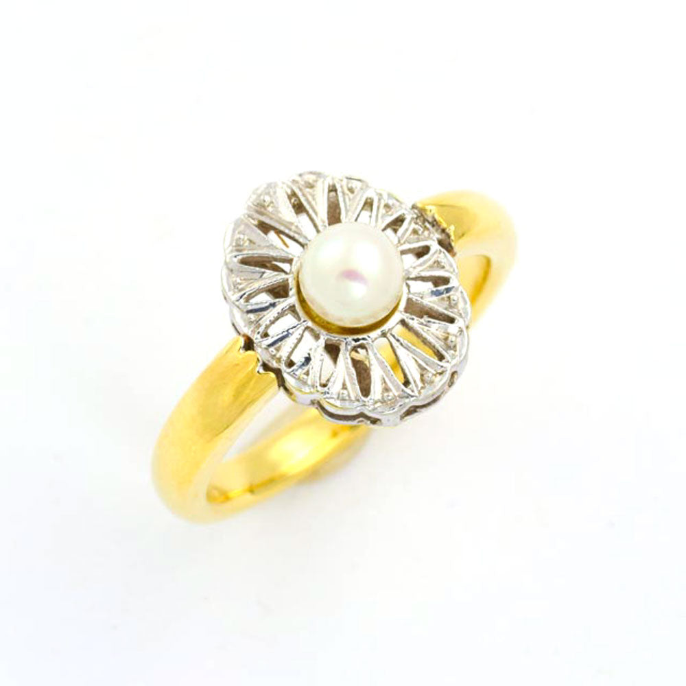 Bei dem Schmuckstück handelt es sich um einen Ring aus 750 Gelb- und Weißgold mit einer Zuchtperle.