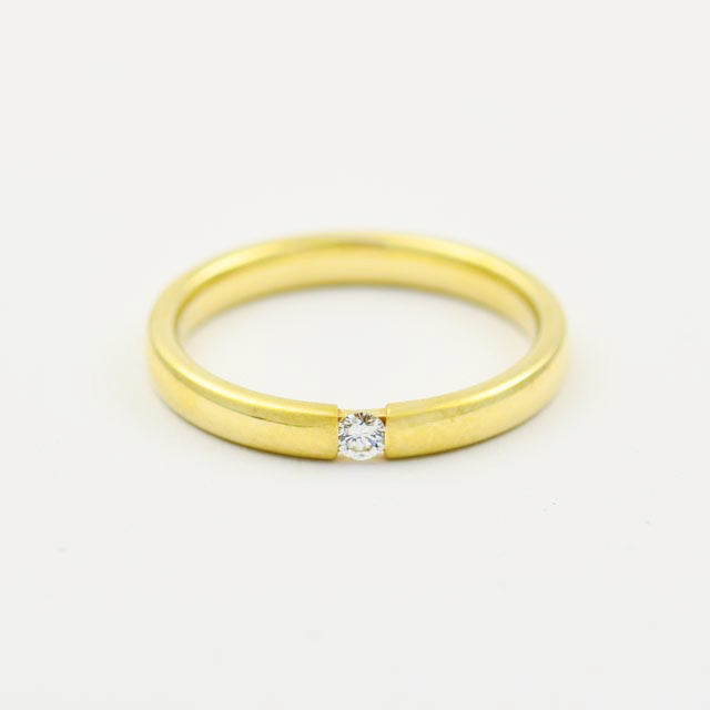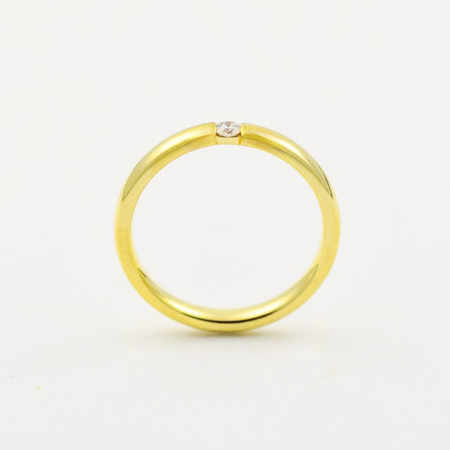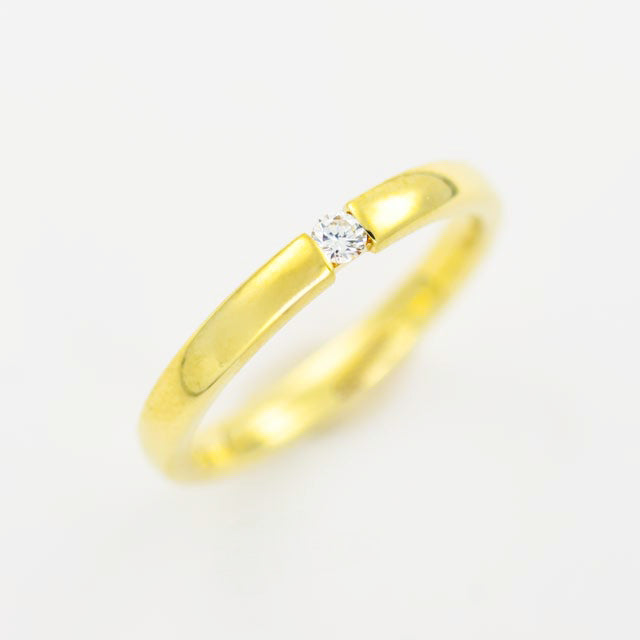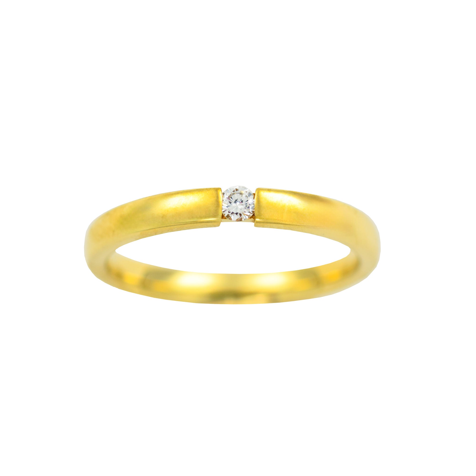 Bei dem Schmuckstück handelt es sich um einen Ring aus 585 Gelbgold mit einem Brillanten von ca. 0,08 ct in der Qualität Weiß mit kleinen Einschlüssen (W/si).