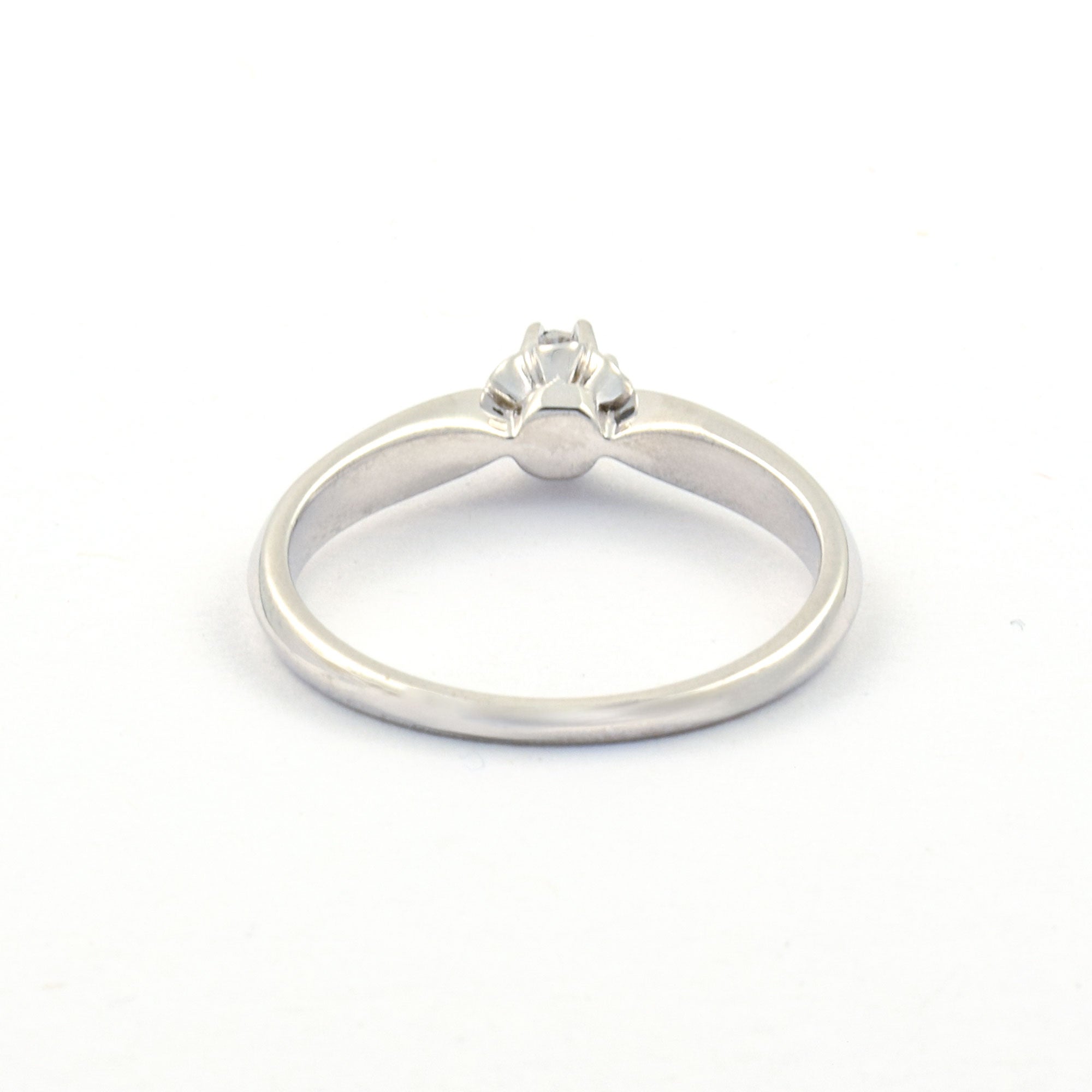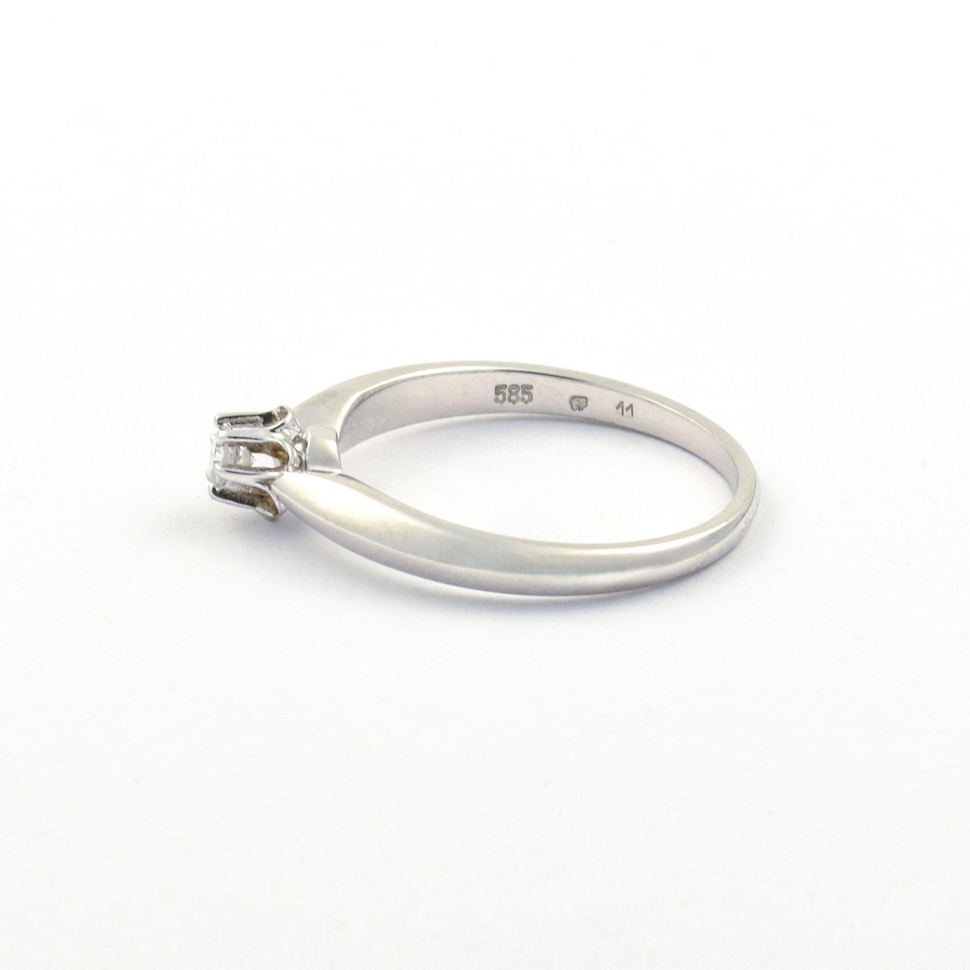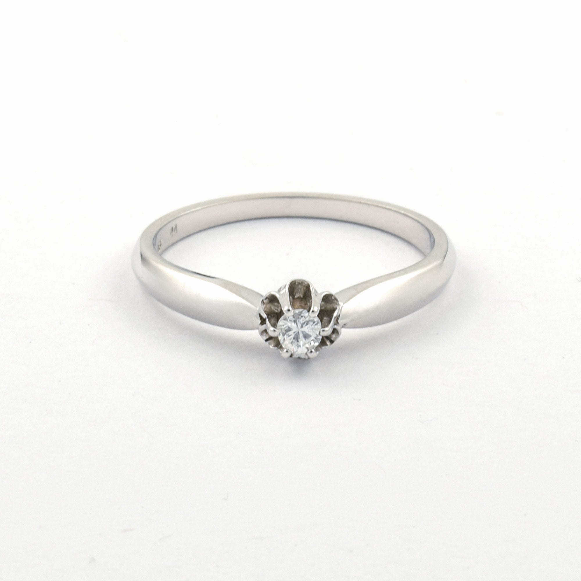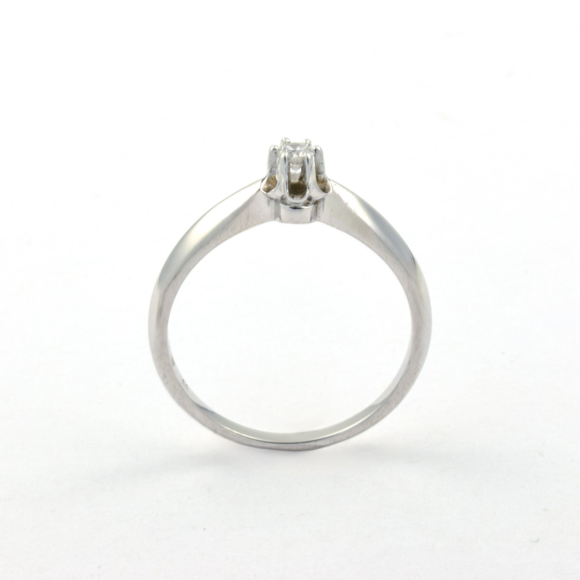 Bei dem Schmuckstück handelt es sich um einen Solitärring aus 585 Weißgold mit einem Brillanten von ca. 0,11 ct in der Qualität Weiß mit kleinen Einschlüssen (W/si).