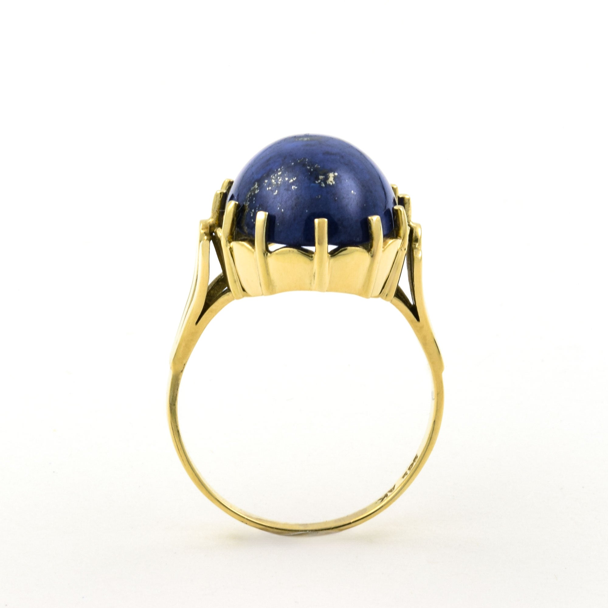 Bei dem Schmuckstück handelt es sich um einen Ring aus 585 Gelbgold mit einem Lapislazulicabochon.