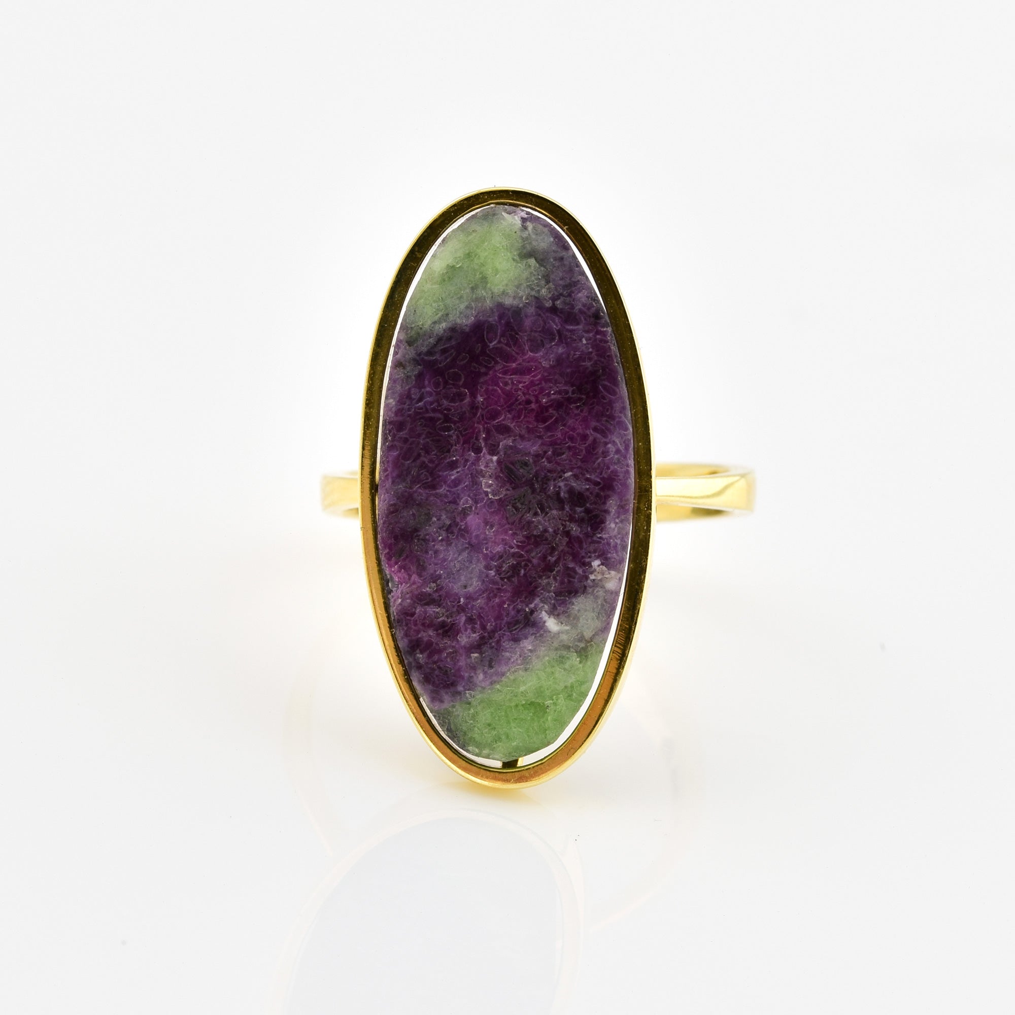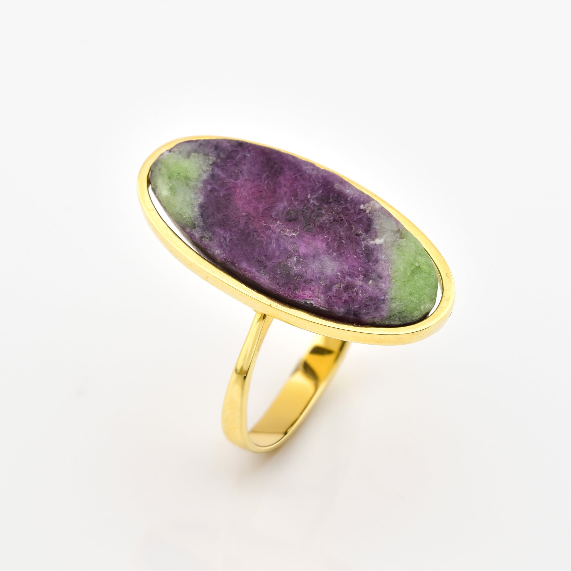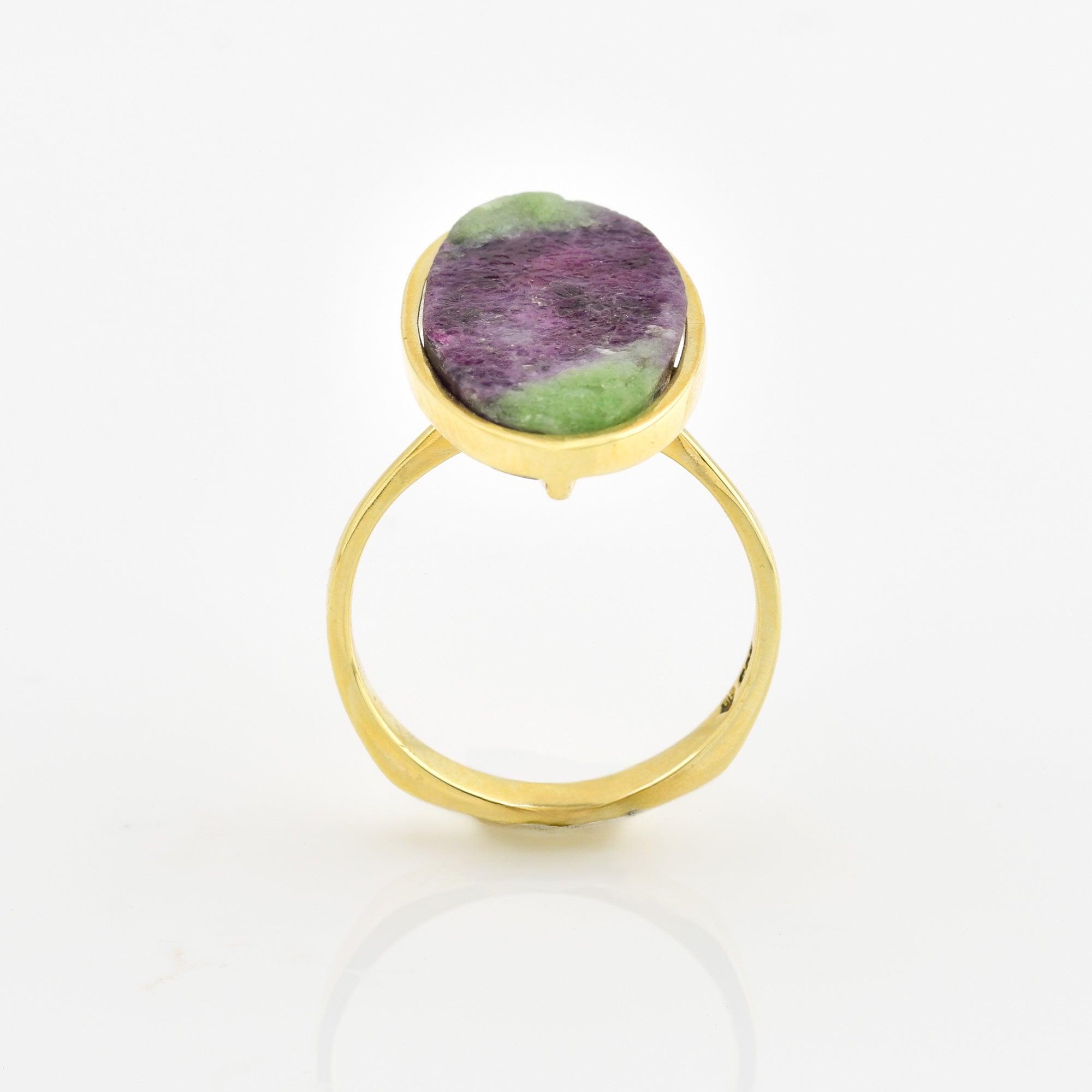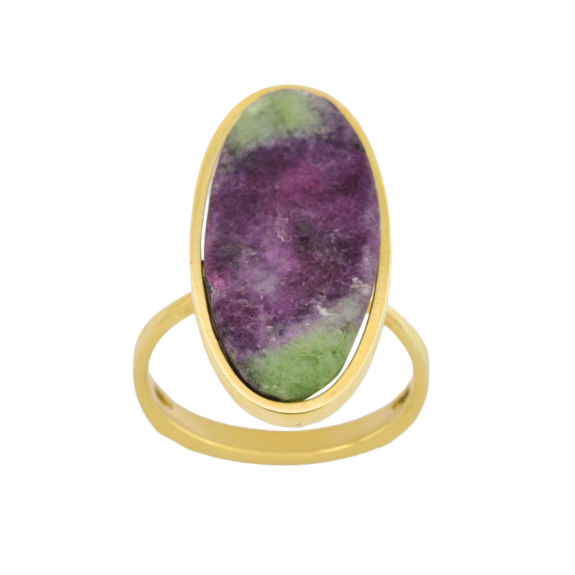Bei dem Schmuckstück handelt es sich um einen Ring aus 585 Gelbgold mit einem Rubinzoisit.