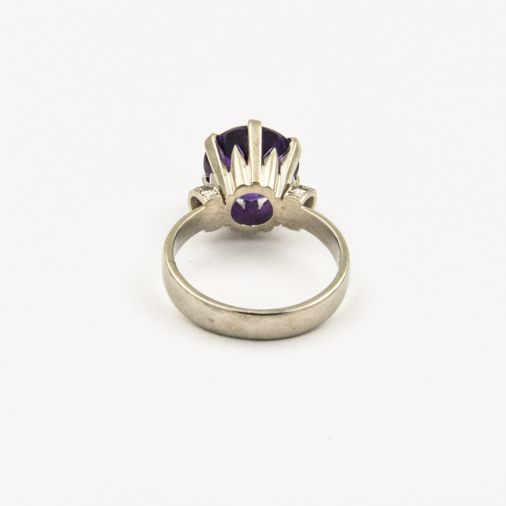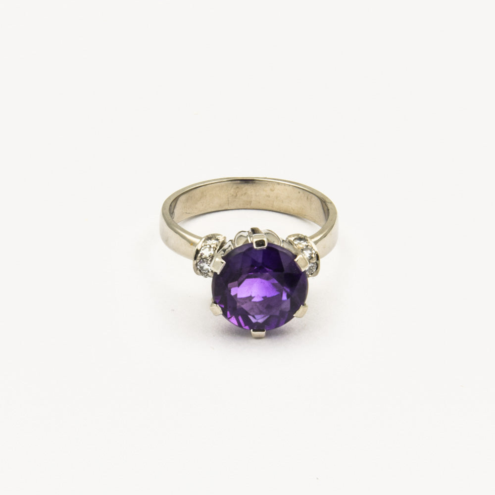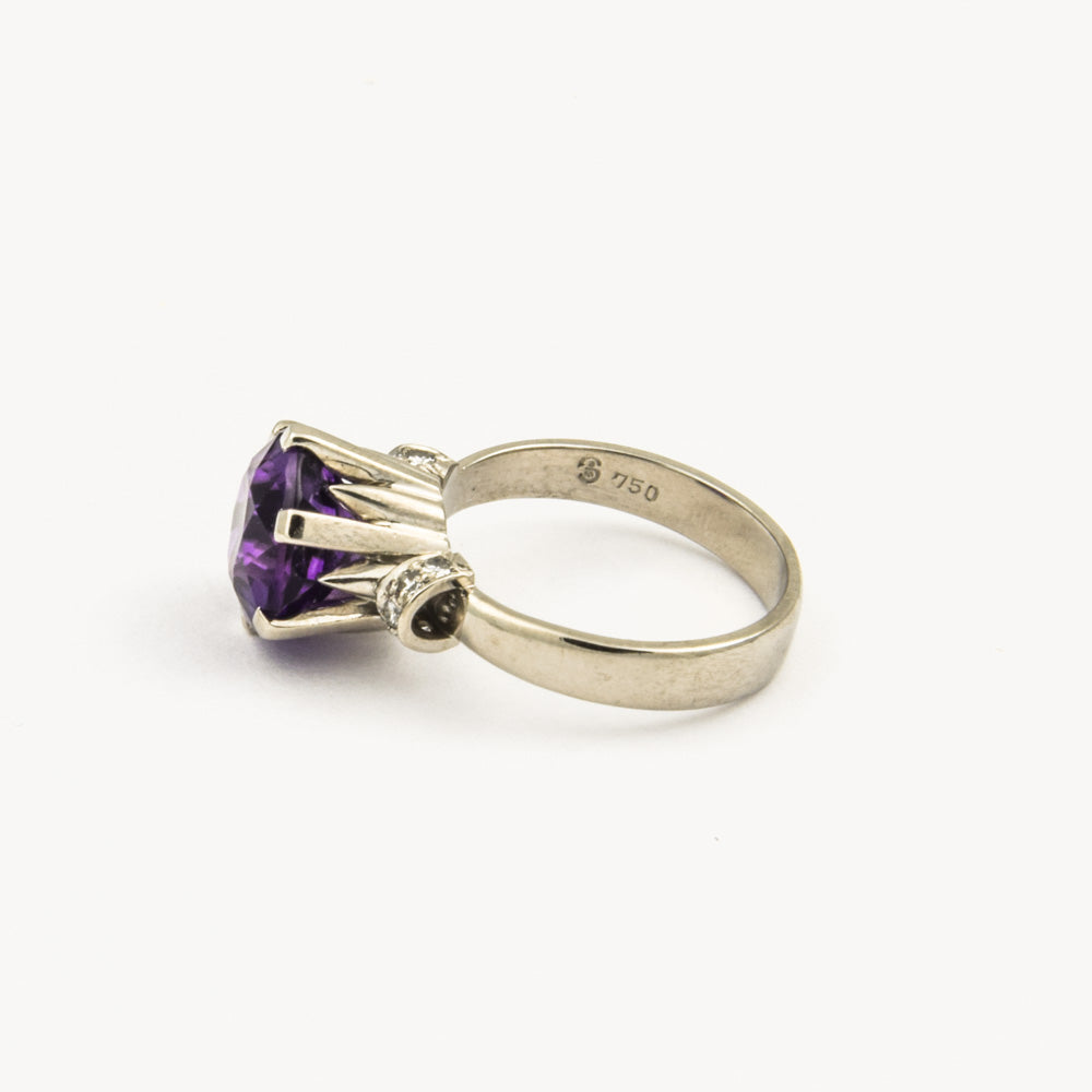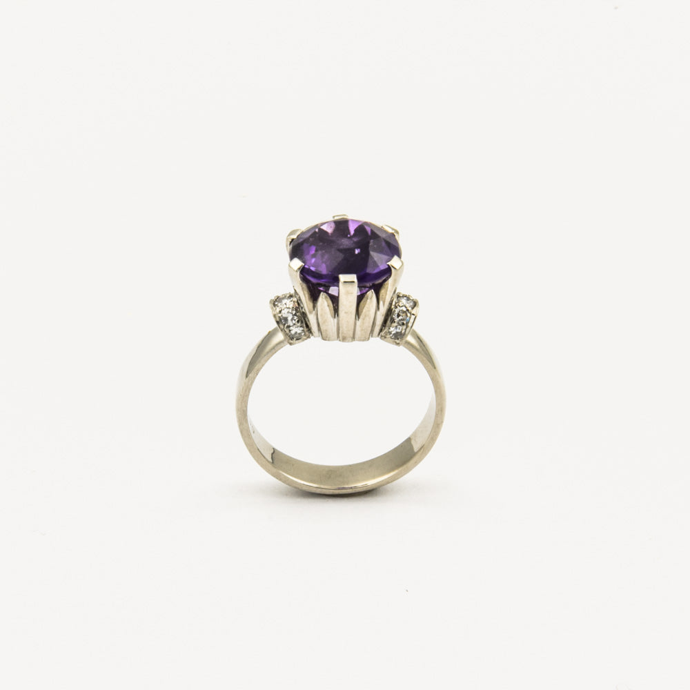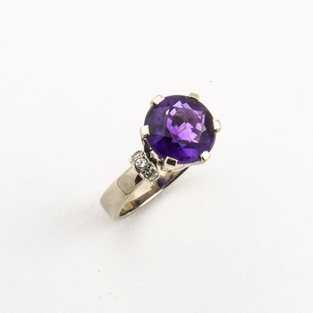 Vintage Ring aus Weißgold mit Amethyst und Diamant