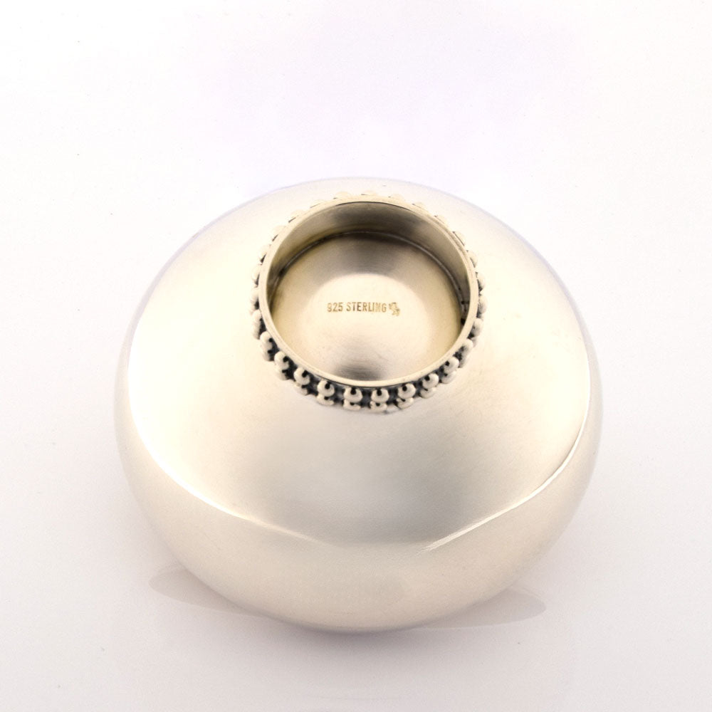Bei dem Schmuckstück handelt es sich um eine Zuckerdose aus 925 Silber.