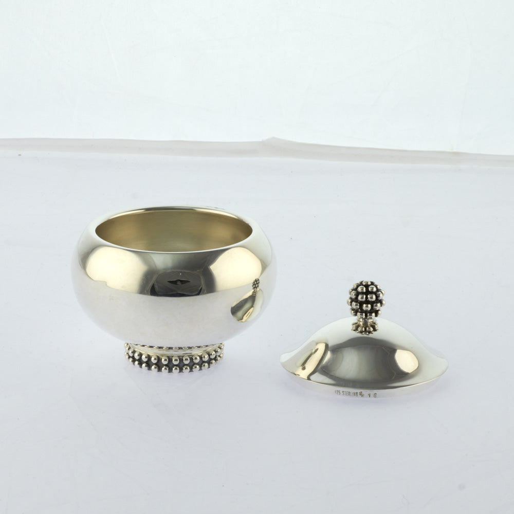 Bei dem Schmuckstück handelt es sich um eine Zuckerdose "Trauben" aus 925 Silber.